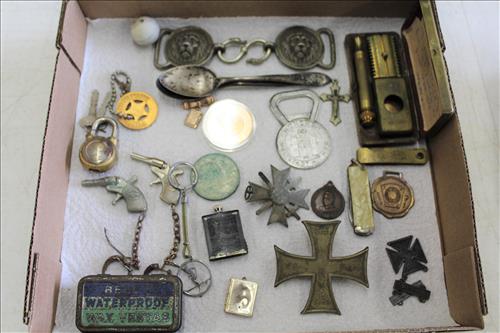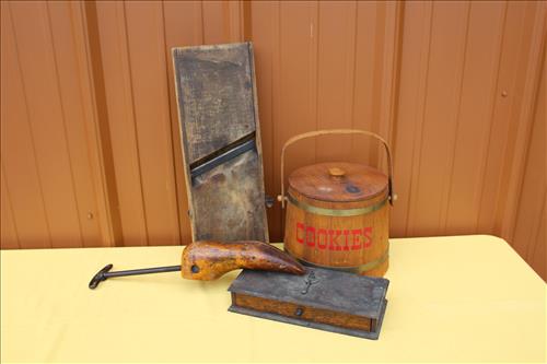 Antiques & Collectibles: Cast Skillets, Griswold #7 Skillet, Crocks, Crock Jug, Barber's Case, Dazey Churn #4 Football, Barrel Butter Churn, Arthur Armour Magazine Rack, Wendell August Forge 1976 Declaration of Independence & Horse Waste Basket; Kleenex 5¢ Vending Machine, Boat Door Stop, Jade Console Bowl, Metal Mellon Bank Sign, United Horse Clock & Terry Clock, Poker Chip Sets, Copper Boiler, Brass Bucket, Aluminum Miners Lunch Pail, Chalk: Horse, Windmill & Dog Ashtray; Brass Bookends: Dolphins, Sea Shells & Horses; Cast Boat Book Ends, Banjo, Mandolin, Paperweights & Perfume Paperweights, Ivory Manicure Set, Cameo Glass Atomizer, Compact Cases, 2 Fenton Lamps & Velva Rose Vase, Squirrel Door Stop, Post Cards, Large Collection of Model Ships & Sail Boats, Brandy Dispenser, Candy Store Jar, Wilder Thermometer, Ice-O-Mat Ice Crusher in Original Box, Glass Washboard, Phoenix Lamp, Mission Style Floor Clock, Wood Rocking Horse, Pyrex Bowls, Pottery, S.S. Kresge Co. Advertising Box, Brass & Copper Items, Wolf Clock, Stained Glass Turtle & Butterfly Lamps, Glass Frogs & Reamers, Quaker State Adv, Castors, Cookie Cutters, 1937 Home Arts Needle Craft Magazines, Flatware Set, Elvis Items, Rolling Pin, Tapestry, 1924 Lamar Prints, Disneyland Magazines (1972), Watches, Valise Basket, Pastel Saucers, Platonite Creamer & Sugar, Hazel Atlas Ribbed Ball Pitchers (1930's), Flash Glass Queen Heart Lamp, Ruby Red: Glasses, Plates, Sugar & Creamer; Gemton "Carry-All" Tricycle, Grove City High School Class Pictures - 1918, 1920 & 1922; Advertising Tins, Community Toy Wood Tractor, Hall China & "Wildfire" Bowl, Metal Serving Trays: Rexall, Christian Feigenspan Brewing Co, Coca-Cola McDonald's -1982, 1996 Kellogg's, Miller Beer Tip Tray & More; Blue & Banded Pottery Bowls, Yellow Ware Bowls, Fostoria Coin Vase, Windsor Canadian Pitcher, Toothpick Holders, Enamelware, Milk Glass Baskets & Bowls, Hamilton Beach Custard Bowl, Royal Copley Vase, Mid Century Ashtrays, 5 Gallon Oil Cans, Noritake & Nippon, Puritan, Suzy Home-Maker Oven, Shenango China, Glass Rolling Pins, American Trumpet, 1960's Toy Box, Slim Jim Pitcher, Grove City Historical Prints, Maracas, Table Kaleidoscope, Winnie The Pooh Lunch Box & Thermos, Sleds: Lightning Slider, Flexible Flyer & Champion; Fosteria, 5 Early Wood Tine Rakes, Clam Pan, Grain Shovels, Primitive Strainers, Lugar Lunch Meats Adv Sign, Breweriana: Lowenbrau ½ Keg Sign, Becks Beer Chalkboard, Miller Lite & Coors Light Clocks, Tap Handles, Seagrams & Bud Dry Mirrors & More; Billiard Signs & Clock, Vermont Antique Bucket, Wood Buckets, Street Signs: Stop & Arrow; Small Wood Ladder, US Parade Flag, Lanterns, Gumball Machines, Victrola Records, United Ship Clock, Brass Fire Box w/ Horses, Egg Crate, Slaw Cutter, Advertising Crates, Small Salesman Sample Cast Stoves, Antique Fresh and Air Metal Fan, Reverse Painted Mirror, Gates Caps & Thermostats Adv Display, Draw Knives/Scrappers, Matchbox & Hotwheels Cases, Toy Tanks, Marx Cowboys & Indians, Chuck Wagon Jeep, Metal Trunk, Milk Can, Hanson Nursery Scale, Hand Fire Extinguisher, 4 Mitchell Reels, 2 Penn Super Mariner Reels (#349 & #49), Fishing Lures, Battery Powered "Bar Tender", Lionel Track Parts & Switches, Army & Fraternal Pins, Patches, Bars & Medals; Watch Fobs, Straight Razors, Ruby Red Punch Bowl Set, Navy Recruiting & Airplane Posters, Salem Art Deco Clock, Cameras, Wedgwood, Hallmark Ornaments, Lenox Snowman, Stainless Aluminum Christmas Tree, Molded Snowman, Der Welt Krieg 1914-1918 German Sticker War Book, Coleman Lantern & Catalytic Heater, Jim Beam Duck Series Decanters, IBM Wall Clock, Miner's Lamp & More.
