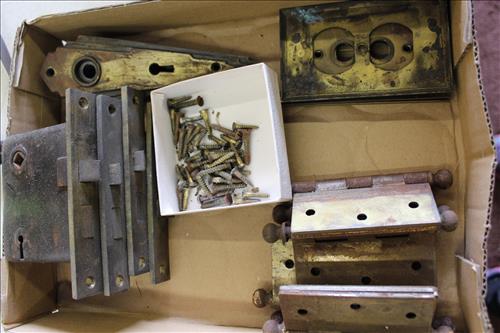 Antiques & Collectibles: Cast Skillets, Griswold #7 Skillet, Crocks, Crock Jug, Barber's Case, Dazey Churn #4 Football, Barrel Butter Churn, Arthur Armour Magazine Rack, Wendell August Forge 1976 Declaration of Independence & Horse Waste Basket; Kleenex 5¢ Vending Machine, Boat Door Stop, Jade Console Bowl, Metal Mellon Bank Sign, United Horse Clock & Terry Clock, Poker Chip Sets, Copper Boiler, Brass Bucket, Aluminum Miners Lunch Pail, Chalk: Horse, Windmill & Dog Ashtray; Brass Bookends: Dolphins, Sea Shells & Horses; Cast Boat Book Ends, Banjo, Mandolin, Paperweights & Perfume Paperweights, Ivory Manicure Set, Cameo Glass Atomizer, Compact Cases, 2 Fenton Lamps & Velva Rose Vase, Squirrel Door Sto...
