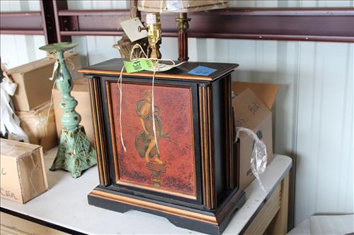 Furniture & Accent Pieces: Cocktail Tables w/ Drawer, Leather Bed, Zebra Pattern Slipper Chair, Many Wood Accent Chairs, Bistro Table, Small Tables, Distressed Coffee Table, Metal Sofa Table, Metro Chair, Zebra Stool, Small Cabinets, Men's Wardrobe Stand, Enamel Top Table, Peruvian Distressed Bombe' Chest, Art Deco Adjustable Bar Stools, Half Moon Glass Top Table w/Stool, Plant Stands, Metal End Tables, Pine Shelf W/Drawers, Ornate Wall Crosses, Mantles, Clay Fruit Baskets & Fruit, Industrial Picture, Retro Light Fixture, Mexican Wall Art, Metal Design Wall Mirrors, Metal Sconces, Glass Candlesticks, Candlestick Lamps, Glass Vases, Metal Framed Wall Art, Wood Walnut Pictures, Wall Baskets, Pedestal Seashell, Hour Glass Vases, Vintage Marble Lamp & A LOT MORE..