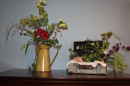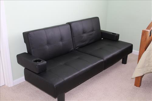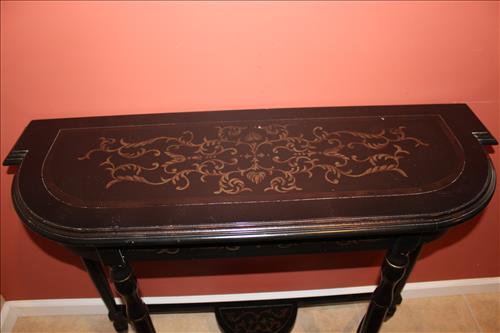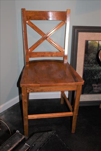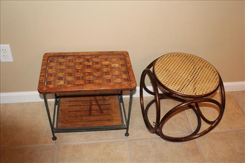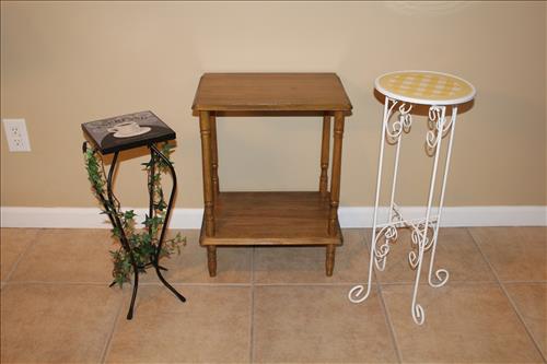 Furniture: Lexington Furniture Entry Hall Stand w/Mirror, Roll Top Oak Desk, Leather Office Chair, Oak Office Chair, Office Desk w/Large Hutch, Oversized Queen Anne Style Cushioned Chairs, Richardson Brothers: Dining Room Table w/ 2 Leaves, 8 Chairs & Table Pad & Hutch on Credenza; Saxony House 2 Tier Coffee Table, Entertainment Center w/ Glass Front, Side Doors & Drawers; Black Pleather Futon, Rustic Hall Stand w/Metal Base, Rustic Stools, Ikea Full Size Bed, Child's Round Oak Table w/4 Chairs, Entertainment Center w/ Side Rolls, Conversion Table w/4 Chairs, Swivel Cushioned Bar Stools, Champagne Hackney USA Oversized Cushioned Chair & Ottoman, Hall Table, Cane Top Side Stand, Rot Iron Base Side Stand, Side Stand Wine Rack, Metal & Wood Plant Stands, Antique Rocker in Paint & More