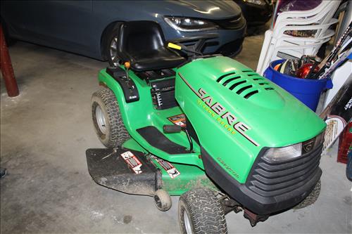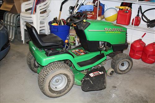 Tools, Equipment & Items of Interest: John Deere 1542 Sabre Lawn Tractor -15.5 HP, USA Grand Marguis Pool Table w/ Ping Pong Top, Ping Pong Accessories, Cue Sticks, wii Fit Plus Controller & Game, wii Gaming System, Baldwin Piano, Everlast Punching Bag Stand, Weight Lifting/Workout Bench w/Weights, Nordictrack Treadmill, Iron Gym Bar, Roller Blade & Hockey Equipment, Camping Equipment: Fishing Poles, Tents, Cooking Gear, Propane Tanks, Utensils, etc; Coleman Bike Rack for 2, Coleman Air Bed, Blue Clean Pressure Washer, 10' Husky Fiberglass Step Ladder, Scotts Seeder, Homelite Electric Hedge Trimmer, Toggs Waders Size 9, Gas Cans, Helium Gas Tank & Etc...