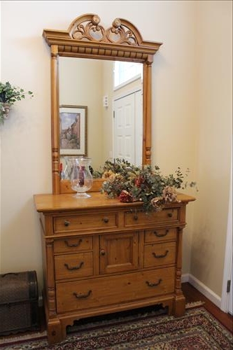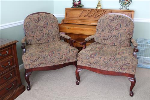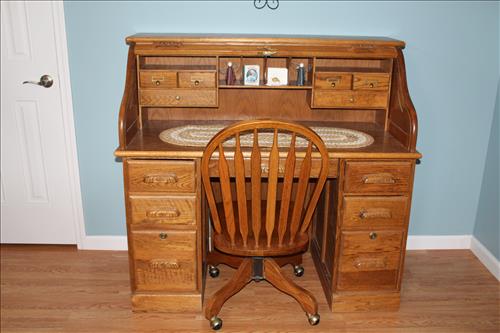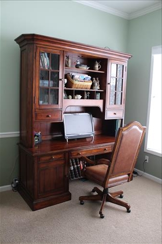 Furniture: Lexington Furniture Entry Hall Stand w/Mirror, Roll Top Oak Desk, Leather Office Chair, Oak Office Chair, Office Desk w/Large Hutch, Oversized Queen Anne Style Cushioned Chairs, Richardson Brothers: Dining Room Table w...