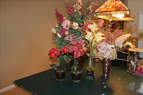 Household & Misc: Pampered Chef Stoneware/Cookware, Bird Feeder & Houses, Spider Lamp, Floor Lamps & Slag Glass Lamps; Wood Game Set, Many Board & Other Games, Candlestick Holders, Large & Small Area Rugs, Oak Wall Shelf, Unusual Silk Arrangements, Serenity Garden Plates, Fellowes Paper Shredder, Stemware, American Tourister Suitcase, Sport Bean Bag Chairs, Moon Seat, Mikasa Clear Glass Candlestick Holders & Vases, Italian Dish Set, Amazing Grace Wood Sign, Samsung DVD Player, Stainless Steel Stock Pot, Hot Stone Massage Book & Kit, Kodak Printer - Easy Share Dock, Picture Frames, Many Dish Sets, Kids Pampered Chef Items, Cook Crock Pot, Ceramic Fondue Set, 6 Lawn Chairs, Thomas Lighting Light Fixture, David Garcia & F. Munier Framed Pictures & A LOT MORE!