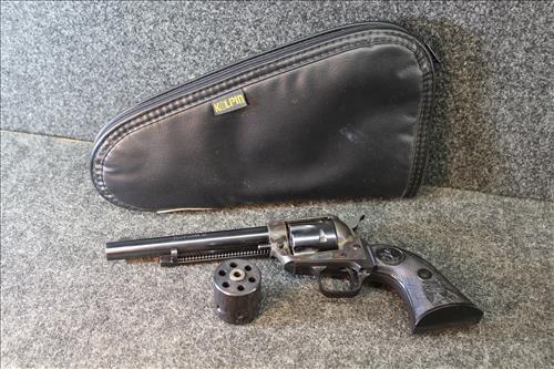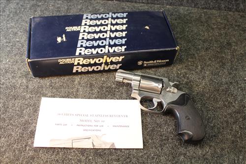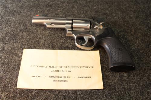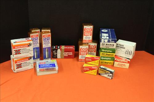 Guns: Smith & Wesson .357 Combat Magnum Stainless Revolver Model 66, Smith & Wesson 9MM Model 669, Smith & Wesson 38 Special Model 60, Interarms Virginian Dragoon 44 Cal Magnum & Colt Peace Maker .22 Cal.; Leather Holsters, Hand Gun Grips, Gun Cleaning Items & Ammo: 44 Rem Mag, .22 Long Rifle, .38 Special, 357 Mag, .22 Mags & 44 Mag Shot Shells.
