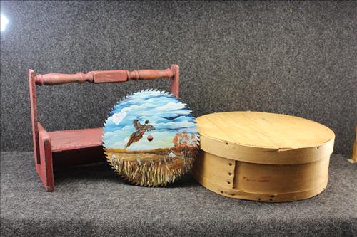 Vintage Furniture & Wood Treasures: Branchton General Delivery Post Office, 15 Drawer Card Catalog on Legs, Porcelain Lined Wood Phone Booth, Church Pew, Deacon Bench, Oak Ice Cream Parlor Table w/3 Chairs, Oak Bench w/Storage Seat, Oak Rocker, Marble Top Dresser w/Mirror, Oak China Cupboard, Victorian Door, Glass Door Book Shelf, White Primitive Seed Bin, Wood Yard Art, Maine Wood Boxes, Tool Boxes, Norwegian Wood Lunch Box, Slaw Cutter Candle Holder, 2 Shelf Wall Cabinet, 1 Drawer Oak File, Printer Trays, Step Stools, Decorative Skis, DIY Wood Items, Wood Stove Plant Stand, High Chairs, Hincher Stool Ladder, Hand Carved Pillar, Wicker Plant Stand, Lift Top Commode, Claw Foot & High Back Piano Stools, Sun Telegraph Wagon, Large Wheeled Wagon, Dovetailed & Hand Painted Boxes, Ethan Allen 3 Tier Shelf, Antique Baby Doll Crib on Wheels, Wood Wares: Pestles, Spools, Spatulas, Rolling Pin, Shoe Forms, Beer Tops & Stoppers; Antique Vermont Bucket, Planter Bucket, Pantry Box, Variety of Trunks, Claw Foot Parlor Table, Ladder Back Rocker, Large & Small Ammo Boxes, Barrel Butter Churn, Ladder, 3 Swivel High Back Bar Stools (early 70's), Mahogany Hall Chair, Old Wood Well Bucket, Folk Art Stool & ETC.