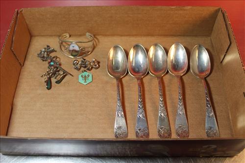 Coins, Stamps & Jewelry: 10K Rings, 10K Bracelet, 10K Class Rings, 14K Bands, Sterling Silver: Pendants, Bracelets, Rings & Turquoise Necklaces, Bracelets, Rings, Earrings & Pendants; Sterling Silver S & P Boats, Sterling Silver Tiffany & Co. Serving Spoons, Costume Jewelry, Mexican Silver Items, Cameos, Navajo Jewelry, Opal Stones, Silver 2013 American Silver Eagle, Silver Coins: Morgan & Peace Dollars, Walking Liberty, Franklin & Kennedy Halves, 1946 Booker T. Washington Half, Standing Liberty & Washington Quarters, Mercury & Roosevelt Dimes & Wartime Nickels; Silver Certificates, Buffalo & V-Nickels, Wheat Pennies, Foreign Coins, Mint Greenland Stamps, Foreign Stamp Book & A LOT More....