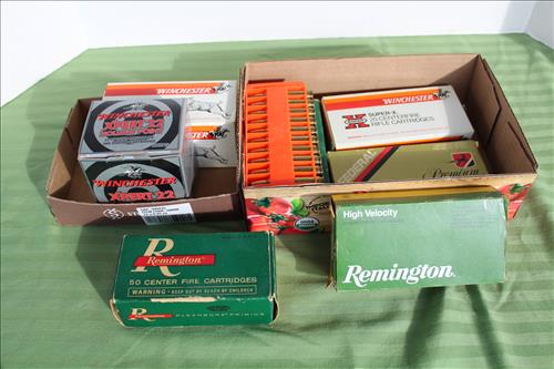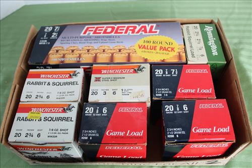 Guns & Ammo:Remington Model 700 .30-06 Cal w/ Simmons Scope,Remington Field Master Model 572 .22 Cal SL/LR, Mossberg Model 500 A 12 Gauge Auto Chock, Mossberg Model 500 CS 20 Gauge, Ammo: 12 Gauge Loose, 11 Full Boxes of 12 Gauge, 9 Full Boxes of 20 Gauge, 30-06 Springfield, .22 LR, 38 Special & 308 Winchester;Gun Cleaning Kit, Soft Case & Deer Motif Ammo Box.