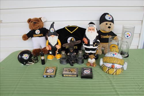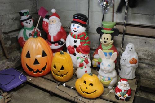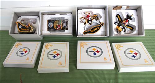 Interesting:Blow Molds: Holy Family, Ghost, Pumpkin, Easter Bunny, Mickey Mouse Caroler, Santa & Snowman; Cast Fire Hydrant, Yard Inflatables: Santa, Snowman, Nutcracker, Steeler, Grim Reaper, Halloween Globe, Cauldron, Easter Bunny, Slender Pumpkin Stack & Mickey; Massive Collection of New/Used Ladies Watches, Steeler Highland Mint 2008 AFC Championship Coin, Babe Ruth Special 5 Card Collector Set in Tin, 1oz. Fine Silver Bullion Belt Buckle, Many Nascar & Steeler Jackets, Large Selection of New Merchandise, 1985-1990 Large Baseball Card Collection & Etc......