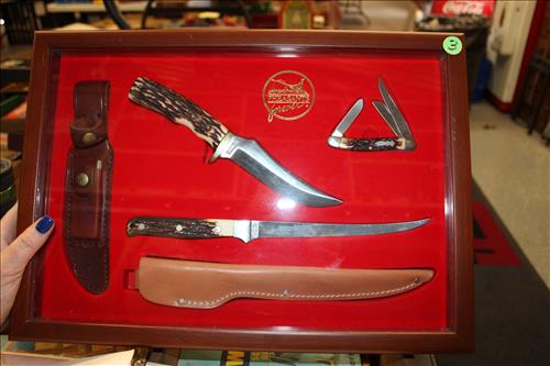 Guns, Ammo & Hunting :Mossberg Model 500 AT 12 ga,Ducks Unlimited Mossberg 500 A 12 ga Never Fired, Remington Model 11-48 16 ga w/ Choke, Japanese Arisaka Model 99 - 7.7mm cal w/ Scope, JC Higgins Model 583-22 20 ga,JC Higgins Model 583-24 16 ga, Knickerbocker Side by Side 12 ga, Sears & Roebuck Ranger 16 ga & American Gun Co 12 ga; Raven Arm Model MP-25 .25 cal, Navy Arms by Uberti Black Powder 44 cal Pistol in Presentation Case & Antique Black Powder Guns; Crosman Peli .22 cal Pellet, Daisy Powerline 990 & 1200 BB; Bushnell Trophy Elite 3200 & Weaver Steel Lite II Scopes, Ammo: 12,16 & 20 ga, 38 Special, 357 Magnum, 308 Winchester, 22LR, .30-06 & 7.62 x 39mm; Gun Powder Flasks & Measurers, Soft/Hard Gun Cases, Wildcat C-S Barnett Crossbow w/ Arrows/Scope & Case, Gun Cleaning Kits, 12,16 & 20 gaGun Chokes, Knives: Ducks Unlimited Buck w/ Sheath in Case, Ducks Unlimited Triple Setw/ Sheath in Case, Pheasants Forever Triple Setw/ Sheath in Case, Knapp Hunting Knife Kit & Saw in Sheath, Kaybar Leather Handled Fixed Blade Knife, Chipaway Hunting & Novelty Knives; Leather Sheaths, Mounts, Sports Illustrated 40 x 30 Binoculars, Lansky Knife Sharpening Kit, Creel Basket & Bait Can, Early Lures, Penn Peer Fishing Reel, Tackle Boxes w/ Tackle, Cast Horse Shoes, Baskets of Golf Balls, NIB NJC Size M Full Face Helmet & More.