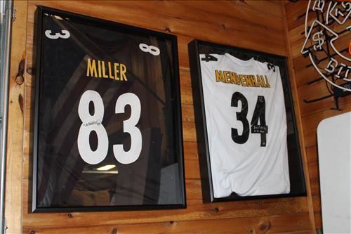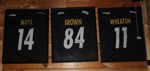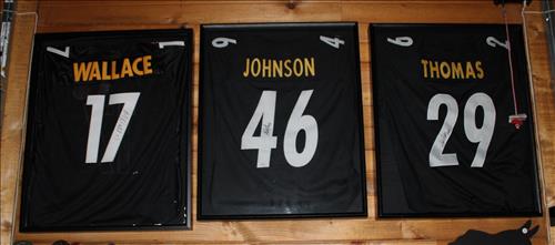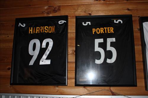 Pittsburgh Steeler Collectibles:15+ Framed and Autographed Steeler Jerseys w/COA's: Porter, Foote, Harrison, Miller, Roethlisberger, Wallace, Brown, Mendenhall, Sanders, Moye, Spence, Johnson, Wheaton, Thomas & Bell; Marino (Pitt Jersey), James Conner AuthenticatedSigned Helmet & Framed Picture, Antonio Brown Framed Picture,Ju Jus Smith-SchusterSigned Helmet&Autographed Authenticated Steeler NFL Footballs in Cases.