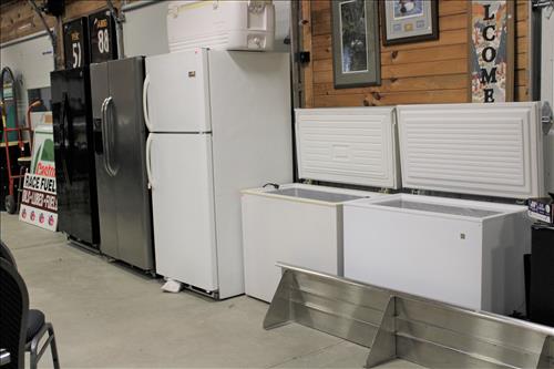 Furniture & Appliances:3 Refrigerators:Frigidaire Upright & Stainless Steel Side by Side & Black Kenmore Side by Side; (2) Chest Freezers, Bradley Smoker, Delonghi Portable AC Unit, Air Care Humidifier, Yellow Metal 55" Table, Unique Custom Made Themed Boards, 9' Stainless Steel Industrial Shelf & (2) SS 6' Tables, 3 Commercial Grade Triple Bowl Stainless Steel Sinks, Stainless Steel Secotainer 3-Door Commercial Oven, Kenmore 5 Burner Ceramic Top Stove, Hobart Commercial Grade Dishwasher, Beauty Rest Queen Tilting Bed Base, NIB Allen Roth Medicine Chest, 28" Sylvania Flat Screen TV, Regency Stainless Steel Wall Sink, Large Stainless Steel Sinks,Art Deco Ceramic Tile Coffee Table & More.