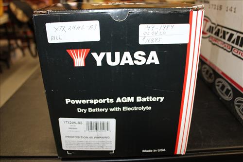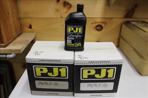 Specialized Motor Oils & Additives:Cases of Motorex Oil of Switzerland: SAE 20W/60, SAE 10W/50, 2T Low Smoke Synthetic Snow Mobile Oil, Oil Additives & Air Filter Oil 206; Penzoil: 10W/30, 15W/40, HD/30, SAE 50 & Marine 2 Cycle Outboard; Hard Drive: Primary Oil for Big Twins, Automatic Transmission Fluid & Full Synthetic 20W/50; Wolf's Head 10W/30, Lucas Synthetic SAE 50, Panoline: Off Road Blend 10W/40 Synthetic 4 Stroke, Gear Blend 10W/30, Synthetic Gear Blend 75W/80W, Off Road15W/50 Synthetic 4 Stroke Motor Oil, SEF 2 Cycle Fuel 40:1 & Street Basic 10W/40 Mineral Oil Based 4 Stroke Motor Oil; Liqui Moly Synthetic 0W/40, Maxima Synthetic Racing Oil 0W/40, PJ 1: Gallons- Synthetic Blend 20W/50, 10W/40, Petroleum 10W/40, Synthetic 10W/40 & Petroleum 20W/50; Quarts PJ1: 2 Stroke Gear Oil SAE 75W, Dry Shaft Hypoid Gear Oil 90W, Synthetic Motorcycle Oil SAE 20W/50 & Petroleum SAE 20W/50; PJ1 Fabric Filter Oil Treatment Spray, PJ1 Renew/Protect Vinyl & Rubber, PJ1 Epoxy Paint in Fast and Gloss Black; Pentofrost Antifreeze A1/A2, Idemitsu 5W/20 Engine Oil, Champion 12V Motorcycle Sport Battery, Yuasa Power Sports AGM Battery, Kenda 410-18 Motorcycle Tire & More.