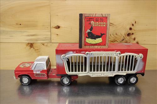 Collectible Toys:New- Nylint GMC 18 Wheeler, Ertl: Farmall & Ford Tractor & Wagon Sets, Oliver Tractor, Farmall F20 Tractor, John Deere Skid Steer, IHC Titan Engine, Soloido Die Cast 1/43 Scale Ford Trucks & Racing Champions Outdoor Life Sportsman Cars; Wyandotte, Tonka & Structo Dump Trucks, Structo City of Toyland Garbage Truck, Hot Wheels & Matchbox Cars, Cracker Jack Toys, Wood Blocks, John Deere Cast Implements, Fisher Price 1976 Ride on Pony & Cash Register, Teenage Mutant Ninja Turtle Large Figures, Wood Pinocchio Jointed Doll, Tin: 1925 Great American Baseball Game, Chein Pipe Organ & American Flyer Train Depot; Nylint Circus Wagon Truck, Large Marx Metal Car, Play Doh Dr Drill 'n Fill, Mattel Big Jim Kung Fu Studio in Original Box, Tomy Chugga Chugga Toot Toot Ding Ding Choo Choo & Etc.