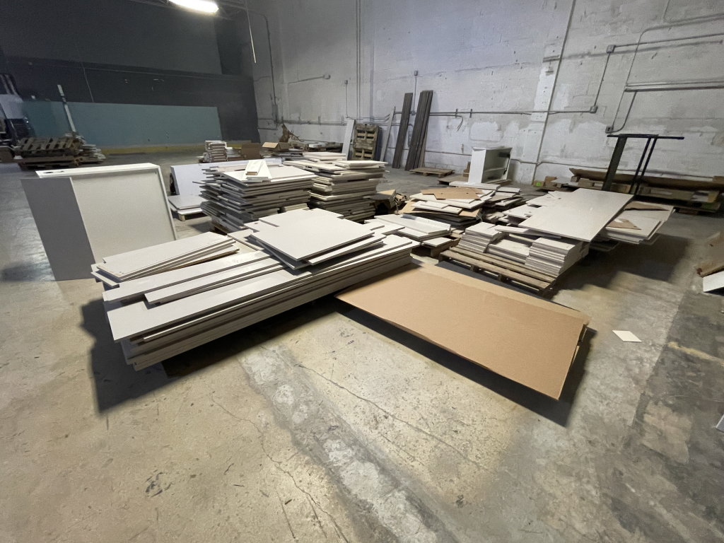 Lots of cabinetry and cabinet construction wood and materials, quality hardware, fasteners and installation products. Top name brand stainless steel appliances from: GAGGENAU, Miele, Samsung, Smeg, Spectra, etc. Unique “conversation piece” furniture and more.