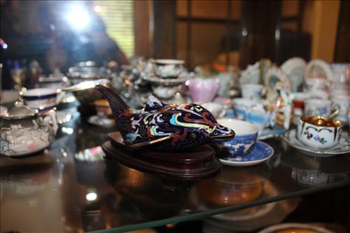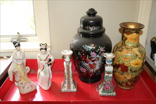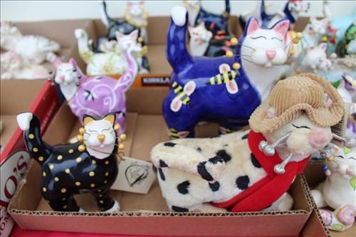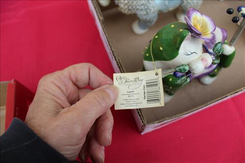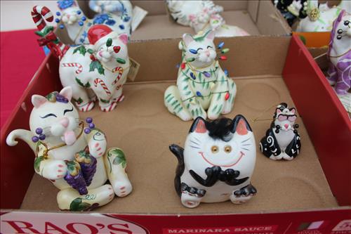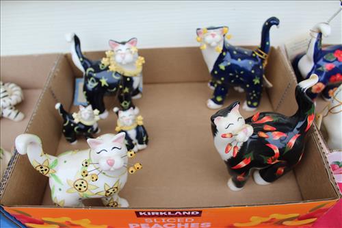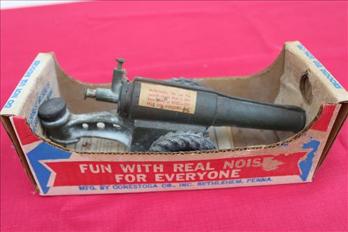 Items of Interest:Mid- Modern Century Pink Stand Ashtray, Big Bang 60mm Toy Cannon, Whimsiclay Cat Collection, Cue Stick Walking Cane, Gilpin & Hittner Inc. Pgh, PA Metal Milk Can, Framed US Postal...