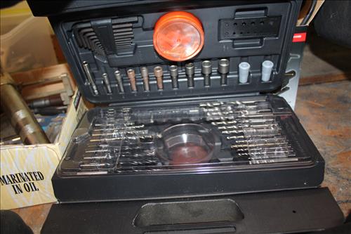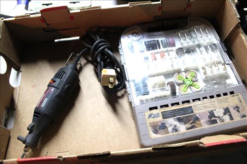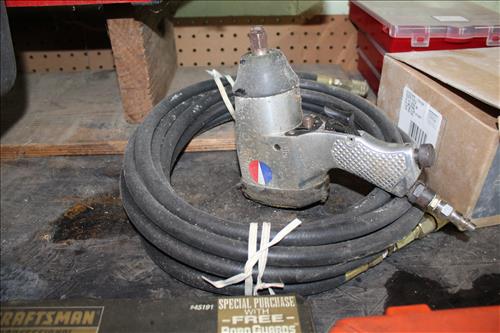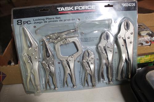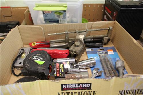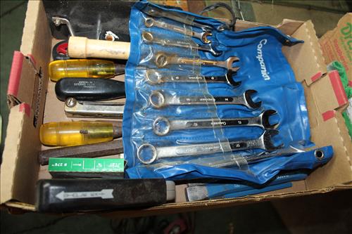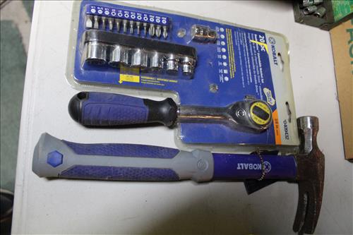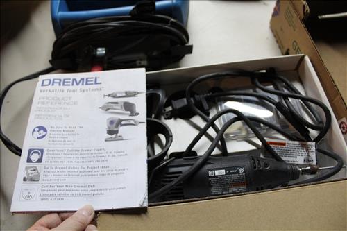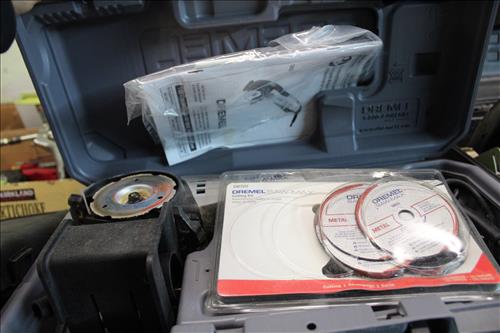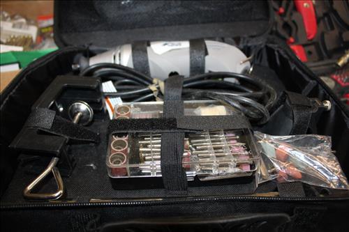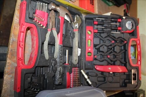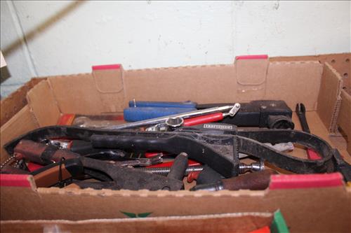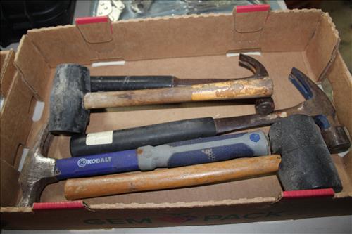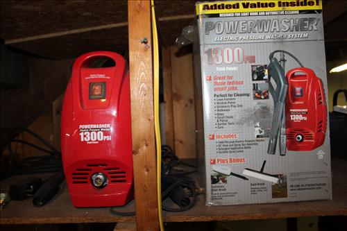 Tools & Equipment:5.5 20-gallon Air Compressor, Portable Air Tank, Craftsman: Ratcheting Tools, Circular Saw & Robo Grips; Blue Hawk Rotary Tool Kit, 1.5-ton Levered Chain Hoist, Dremel w/ Accessories, Dremel Saw, Orbital Hand Sander, Hardware, Drill Bits, Small Bench Vice, Paint Supplies, Electric Spray Paint Gun, Box of Flex Steel, Impact Hammer w/ Hose, "Flip Out" Speed Hex Driver, Ratchet Straps, Schlage Keyless Door Lock, Small Dolly, Hand Tools: Wrenches, Screwdrivers, Tin Snips, Hammers, Chisels & More; Schumacher Battery Charger, B/D Cordless Drill & Mouse Sander, (2) NIB Bionic Force Pro Hose (50ft), Task Force Vice Grips, Chicago Electric Compound Mitre Saw & Oscillating Multi-Function Tool, 1300psi Power Washer, (2) Stanley 500amp Instant Starting Power Packs, 16 gallon Shop Vac, Sprayers, Hoses & More.