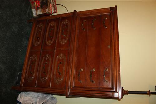 Appliances & Furniture:Appliances: LG Bottom Freezer Refrigerator,, GE Electric Washer/Dryer, Frigidaire Upright Freezer, TV's: Lg 62" & 24", Visio 36" & 42" Flat Screens; (2) Electric Lift Chairs, Sleeper Loveseat, Round Metal Bakers/Wine Rack, (2) Bar Stools, Lift Top Oak Coffee Table, TV Cabinet, Large White Storage Cupboard, Music Stand, Magazine Racks, Basket Organizer Unit, Vintage Washstand, 2 on 3 Highboy Dresser, TV Armoire, Drop Front Desk/Cabinet, Tall Oak Storage Cabinet, US General Work Cart on Wheels, Proform 400X Treadmill & More.