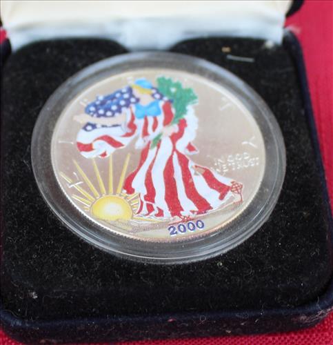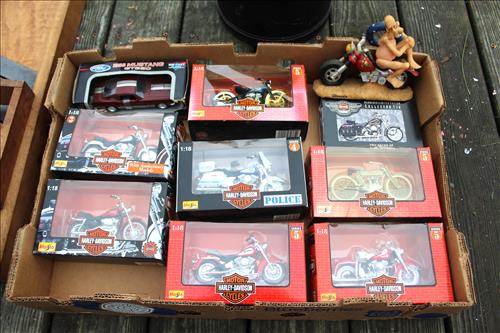Collectibles & Curiosities:1892 Barber Silver Quarter, (3) American Silver Rounds - 2008,2012 & Colorized 2000, Standing Liberty Silver Quarter, Zippo Lighters: AMerican Legion, Golfer, 1970's & Newer; Amberina Crackle Glass Vases, Crocks & Jugs: #5, Small #3, Jug w/ Handle, 3 Leaf Clover & 2 Tone #6; Andeker Beer Pitcher, NOD Harley Davidson Maisto 1:18 Scale Model Motorcycles, Wood Slaw Cutter, Vintage Foreign Stamps, Collector Glasses, Wood Pulley, Brownie Camera, BB Guns: Crosman "150" 22Cal. Pellet, Red Ryder Model 1938B Daisy BB, Buck Jones BB w/ Sundial & Daisy Model B 1105; Fenton Cat, Lenox Snowman, Brass: Sconces, Wall Hooks, Napkin Rings & Horns; Teal Glass Home Style Cookie Kar, Early Lady Portrait, Military Flags, Local Bar Chips, Misc. Pocket Knives, Oil Lamps, Baroque Butterflies in Frame, Hand Made Lead Glass Kaleidoscope, Cobalt Blue Liquor Glasses, Miniature Teacups, Early Utensils, Large 1970's Clay Pot on Stand, Universal Grinders, Nail Barrel, Framed NFL Licensed Steelers Ephemera, Lightening Glider Sled, Vintage Tin Signs: Old Gold Cigarettes & Mavis Talc; Early Christmas: Lights, Paper Houses, Gurley Candles, Wreaths & Electric Writing Santa; & More.