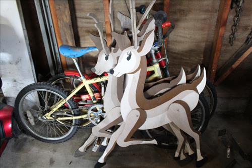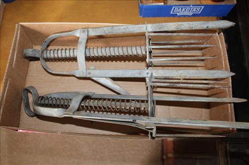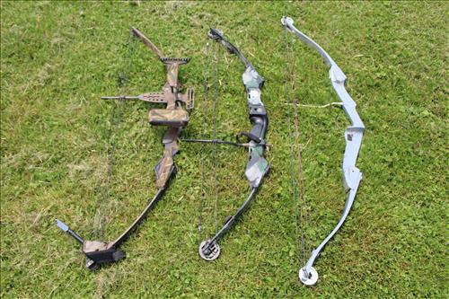 Household & Misc:Samsung 42" Flat Screen TV, Leaded Slag Glass Light, Canister Sets, Full Size Bed Set, Wood Ladder, Magic Lamp Bug Zapper, Hedstrom Tricycle, Camping Toilet, A-Frame for Swing, Sunbeam Regulator Wall Clock, Lounge Chair, Lifetime "Fish & Game" Table, Mole Traps, Pots 'N Pans, Pie Plates, Cutting Boards, Small Appliances, Community Flatware Set in Box, Sunbeam Grill, Compound Bows: Pearson, Hoyt & Lightning Flight; 3 Wood Reindeer, Coal Bucket, Wood Boxes w/Hasps, Small Metal Scrap Pile & More...