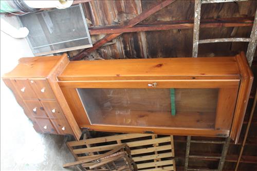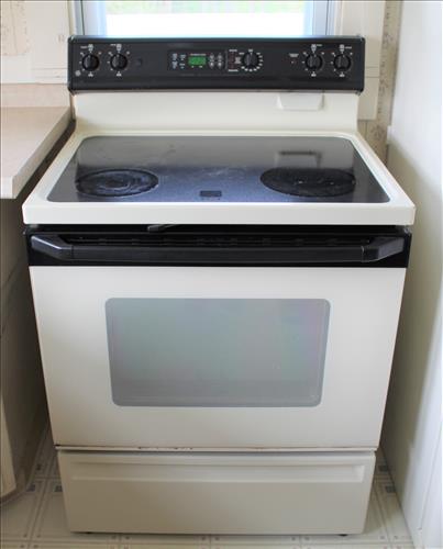 Furniture & Appliances:Kenmore Refrigerator, GE Electric Ceramic Top Stove, Kenmore Electric Dryer,Window Air Conditioner, Composite High Bar Chair, Duncan Phyfe Drum Table, 2 Shelf Book Case, Frigidaire Microwave, Steel Outdoor Table, Metal Cabinet, Glass Front Gun Cabinet & Etc.