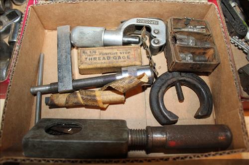 Other Tools:Lincoln Arc Welder AC 225 Amp, Parker Conestoga Trail Leaf Vac, Craftsman Wrenches, Punch Sets, Wheel Barrow, Large Bench Vise, Exhaust Pipe Expander, Chain Hoist w/Beam Brackets, Crow Foot Wrenches, Hole Saw, Tap & Dies, Pipe Cutters, Vise Grips, Pliers, Crescent Wrenches, Chisels, Allan Wrenches, Boxed & Opened Wrenches, Starrett Micrometers, Calipers, Cylinder Gauges, Mac Tools Tool Chest on Wheels,Snap-On Tool Chest, Heavy Jack Stands, Hand Nut Riveter, Tap & Die Sets in Boxes, Pressure Gauges, Hammers, Tin Snips, Pipe Wrenches, Water Pump Refracting Tool, Spring Valve Compression Tool, Sunnen Cylinder Grinder, C-Clamps, Large Scroll Saw, Table Saw, Wood Tool Box, Wood Tool Chests, Hardware Organizers, Snap-On 16" Extension, Valve Seat Reamer Tools, Metal Work Cart on Wheels, Standard Tool Drill Holder, Expansion Reamers & Reamer Pilots Set, Clip on Volt Meter, Worx Electric Blower, B & D Electric Edger, Hall Hole Hone Kit, Yard Tools, Large Hitch w/Stabilizing Bars, Heavy Gauge Electrical Cord, Metal Auto Body Shop Repair Tools, T-Bar Socket Set, Files, Auto Repair Manuals, Large Wood Clamp, Pull Behind Dump Cart & More