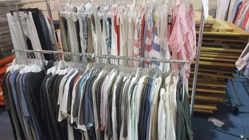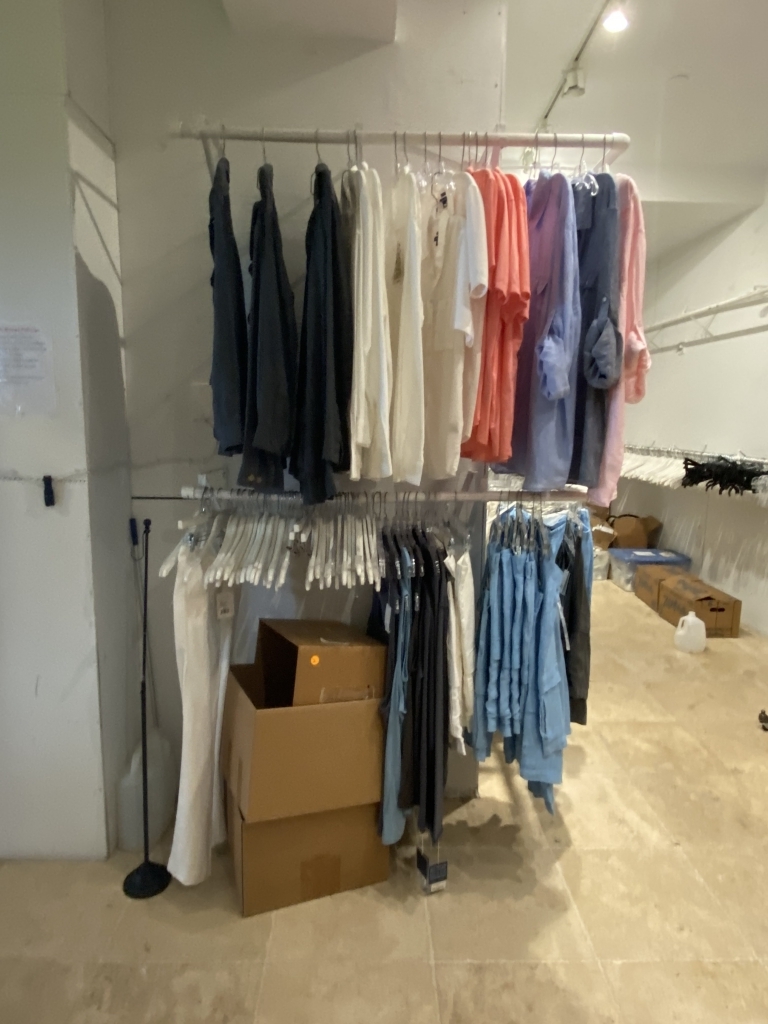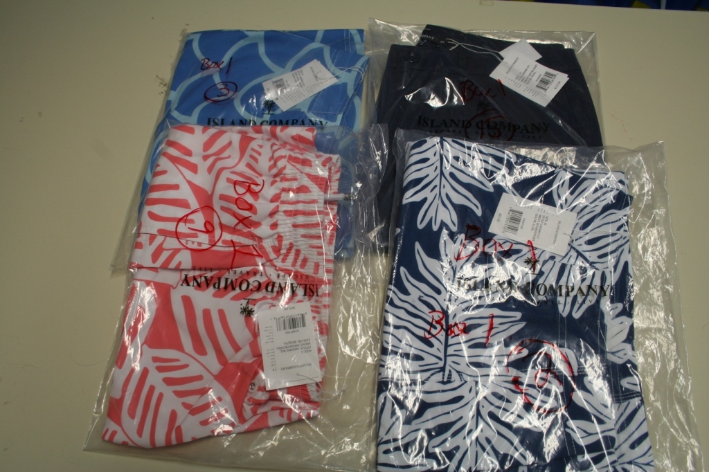Top Resorts and Boutique Quality Collection of NEW women's and men's brand of fine resort-style apparel, footwear and accessories including swimwear, dresses, shirts, boardshorts, beach bags, vintage-style sunglasses, linens and much more. Plus pallet racking, display units, top-quality custom-designed tradeshow/exhibit display, organizing products, durable clothing hangers, large qty. of company brand men’s shoe boxes and more!