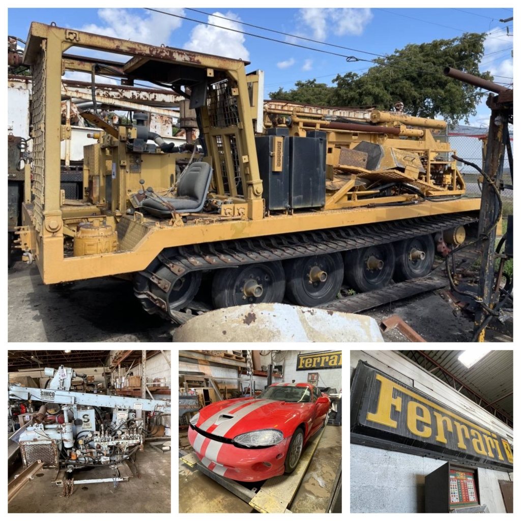 Sale will consist of drilling bits, drill tools, drilling barge with rig, cable and rotary equipment, core drilling machines and supplies, drilling pipe adapters, hand tools, power tools, compressors, milling equipment, warehouse equipment, vast amount of hardware, drill rigs, scrap metal, new and used auto/truck parts, office furniture/equipment, vehicles (Mazda Miata, Jaguar, 2000 Dodge Viper GTS, 1900’s Ford Model A), and so much more.