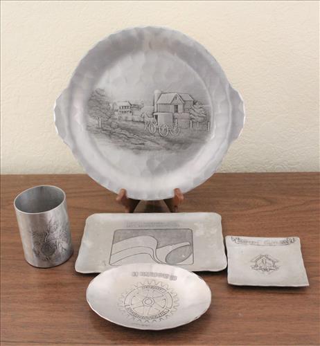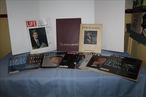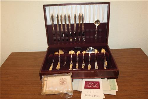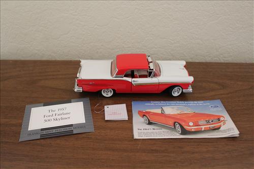 Collectibles:Sterling Silver Weighted Candle Sticks, Kaufmann's 5th Ave Knox Top Hat & Stetson Derby Hat in Original Boxes, Wendall August Forge: Dogwood - Cheese Tray, Large Tray, Jar Holder, (8) Coasters, Casserole Lid, Candy Dish & Trays; Pinecone: Carrying Tray, Bookmarks, Ashtray & Pin; Lilly of the Valley Trivet Trio, Thistle Cup, Amish Buggy Plate, Fraternal Dishes, Key Chain, Ornaments, Poinsettia Candle Shade & Seasons Bronze Plates; 24" Chalk Collie Bank, Fenton: Birds, Praying Angels, Candy Dish & Milk Glass; Art Glass, Paper Weights, Pink Depression Fan Vase, Hand Painted Ceramics from Volant - PA, Hall Tea Pot, Roseville OH Pitcher, German Beer Stein, Cardinal Collectibles, Candlewick Egg/Sandwich Plates, Pink/Yellow Depression Glass, Some 70's Record Albums, Franklin Mint NIB 1957 Ford Fairlane Collectible, Fantasia 5 Piece Salad Set, Capodimonte Fabar Rose, Beautiful "Century" by Fostoria, Wilton Armetale Cast Charger, Vintage Handkerchiefs, American Manor "Ebony" China Set, Baldwin Brass Elephant, Fostoria 1st Edition Nativity, Goebel "Silent Night", "Prospec" Binoculars, Large Angel Collection, Vintage Artillery Toy Cannon, Ceramic White Christmas Tree, Napco Xmas Angel, Vintage Ornaments, Early Cameras, Pyrex 2' Glass Cylinder, Hall Jewel Tea Pitcher & Casserole, Snowbabies, Tudor Tru Action Baseball Game, Pine Knot Yearbooks, Polaris Telescope, Sad Irons, Boy Scout Patches & Memorabilia, DIe Cast Cars/Trucks: 1967 Camaro, 1961 Jaguar, 1924 Kenworth Agway Truck, 1957 Corvette & 1600s Renault & More.