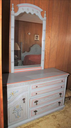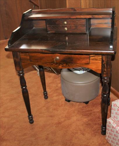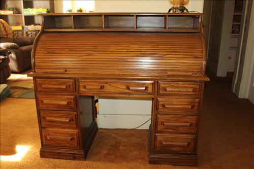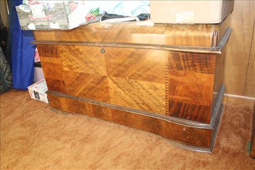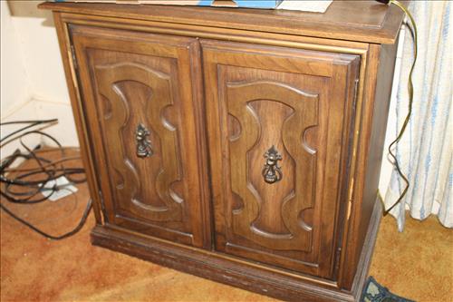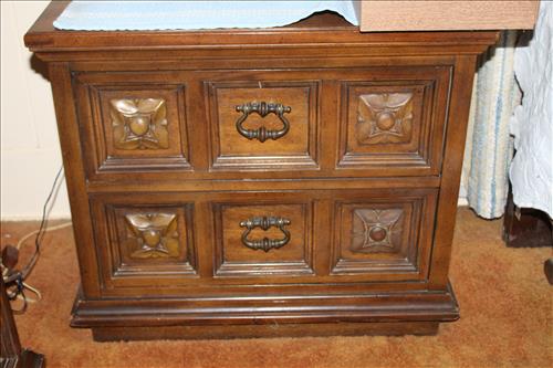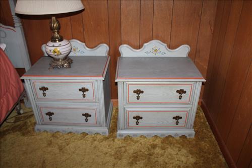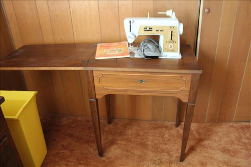 Furniture:Oak Side Entry Curio Cabinet,Outdoor Metal Furniture: Couch, Chair, Coffee Table & (3) Side Stands; 4 pc Bedroom Set: Highboy, Dresser w/ Mirror, Side Stand & Queen Bed; 5pc. Bassett Bedroom Set: 2 Dressers w/Mirrors, 2 Side Stands & Full Bed; Kimbell Pump Organ, Windsor Child Rocker, Oak Foot Stool, Roll Top Desk, Velvet Accent Chairs, White Corner Stand, Pine Corner Cabinet, America Ultra Powerlift Recliner, TV Trays, Floor Lamps, (2) 3 Shelf 1970's Style Book Cases, Small Dark Wood Desk, Cedar Chest, Vtg Record Cabinet, 3.5' Tufted Velvet Bench, Singer Touch n' Sew Sewing Machine in Cabinet & Accessories, School Desk, 2 Drawer Filing Cabinet, Corner Cupboard, 5 Drawer Wood Cabinet, Industrial Chairs & More.