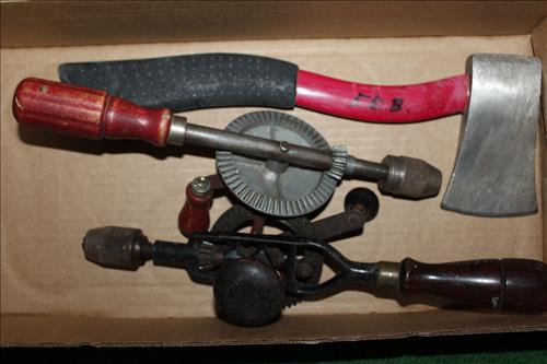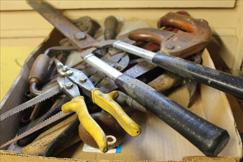 Tools:Generac 2800psi Power Washer, Craftsman: Shop Vac, 4hp Drill & Belt Sander; Husqvarna: 22" Blade Hedge Trimmer, 570 btu Blower, Combo Set- 28cc Powerhead, Chainsaw, Hedge Trimmer, Edger & Trimmer; Wheel Barrel, MTD Yard Machine Snow Blower 8/24, Ames Yard Cart, Garden Tools, GMC Sliding Cut Table Saw, 4 Gallon Round Up Back Pack Sprayer, Sprayers, Werner 8' Aluminum Ladder, B/D Hedge Trimmer, 3' Yard Roller, Bench Vice, Everest 3 Pc. Ratchet Tie Down Set, Porter Cable Circular Saw, Radial Chains, Metal Toolboxes, Hardware Cleanouts, NIB Peet Boot/Shoe Dryer, Hand Tools: Pipe Wrenches, Vice Grips, Files, Screwdrivers, Hammers, Hatchets, Drill Bits, Ratchets, Early Hand Drills, C Clamps, Draw Knife, Dial Caliper & Pipe Cutters; Dremel & Accessories, Skil Palm Sander, Stanley Stapler Folding Wood Rulers, 6 Amp Battery Charger & More.