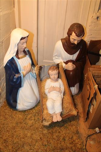 Household:Kenmore Washer & Electric Dryer,Frigidaire 8000btu Window AC Unit, Kenmore 35 Pint Dehumidifier,Kenmore Dehumidifier, Whirlpool Upright Freezer,Gaming Chair, Vizio Sound Board, Velodyne Woofer/Sony Tower, Samsung Reality Portal, Virtual Reality Glasses, (2) Flat Screen TV's - 42" Vizio & 42" Panasonic; T Fal Pressure Cooker, Oster Red Hand Mixer, Stainless Steel Crockpot & Large Mixing Bowls, Visionware, Avocado Green Pyrex Casserole w/ lid, Cheese Boards, Flatware Sets: Nobility Plate, William Rogers & Community; Art Deco Kromex Ice Bucket, Ebels NIB Green Wood Placemats, Cosco Step Stool/Chair, 7' Christmas Tree w/ Box, Carvel Steak Knives, Thomas Pacconi AM/FM Stereo Cassette Player, Disc Player, Cameras: Nikon 35mm w/ Zoom Lens & Sony Cybershot; Frye 9.5D Leather Boots, Gary Gordon Size 38 Leather Jacket, Spartina Purse, Cement Yard Art, Needlepoint Animal Picture, Holmes Ceramic Heater, Carpeted Kitty House, Canning Jars, Shelving Units, Yard Angels, Aluminum Wares, Molded Plastic Nativity & More.