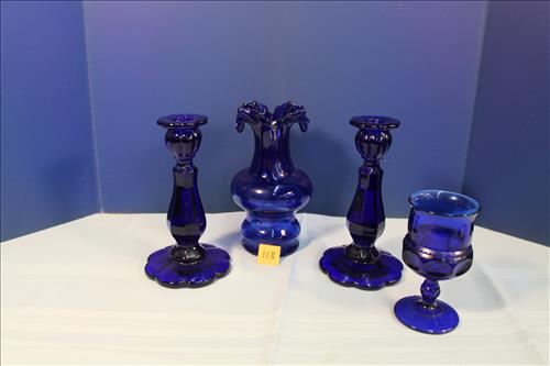 Cobalt Blue Vase, Candlesticks & Goblet