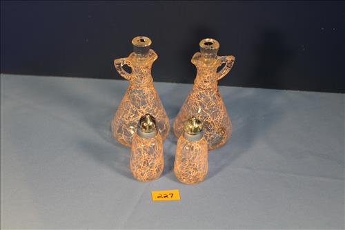 Pink On Clear "Spatter" Cruets & S/P