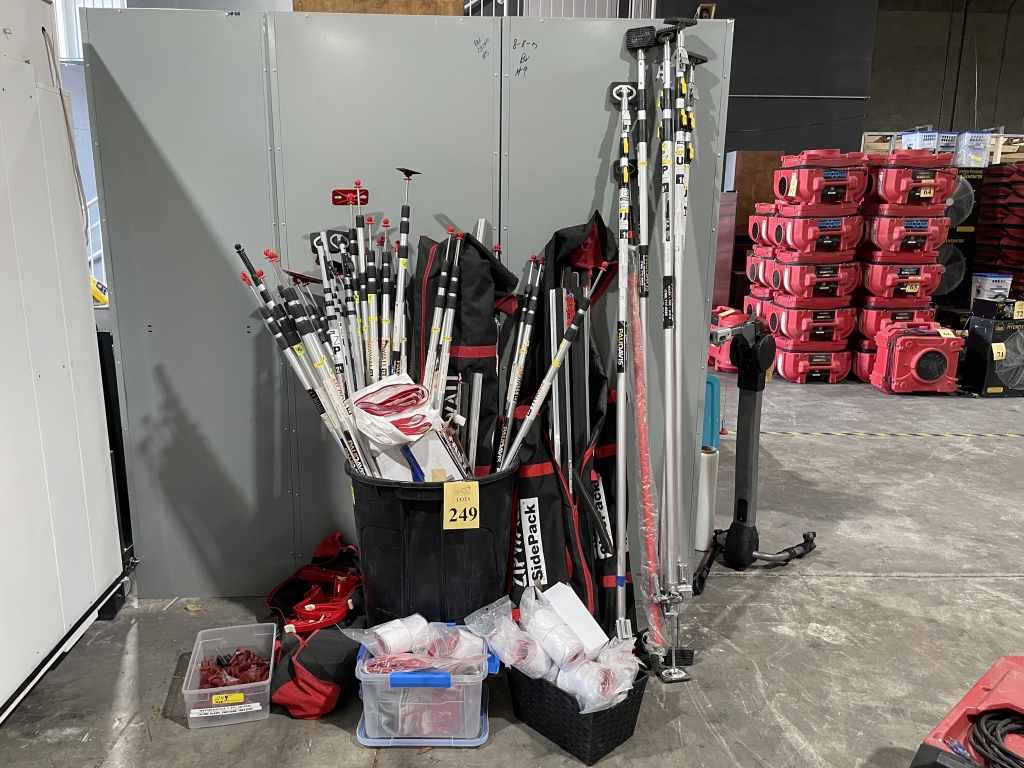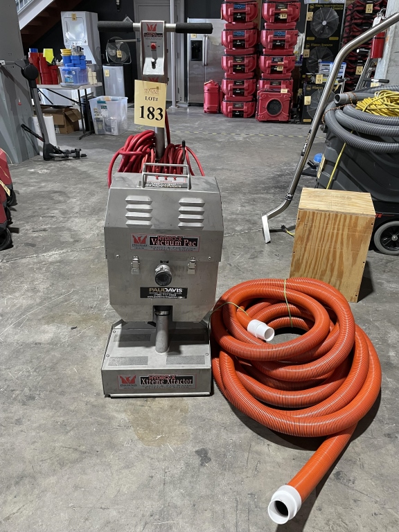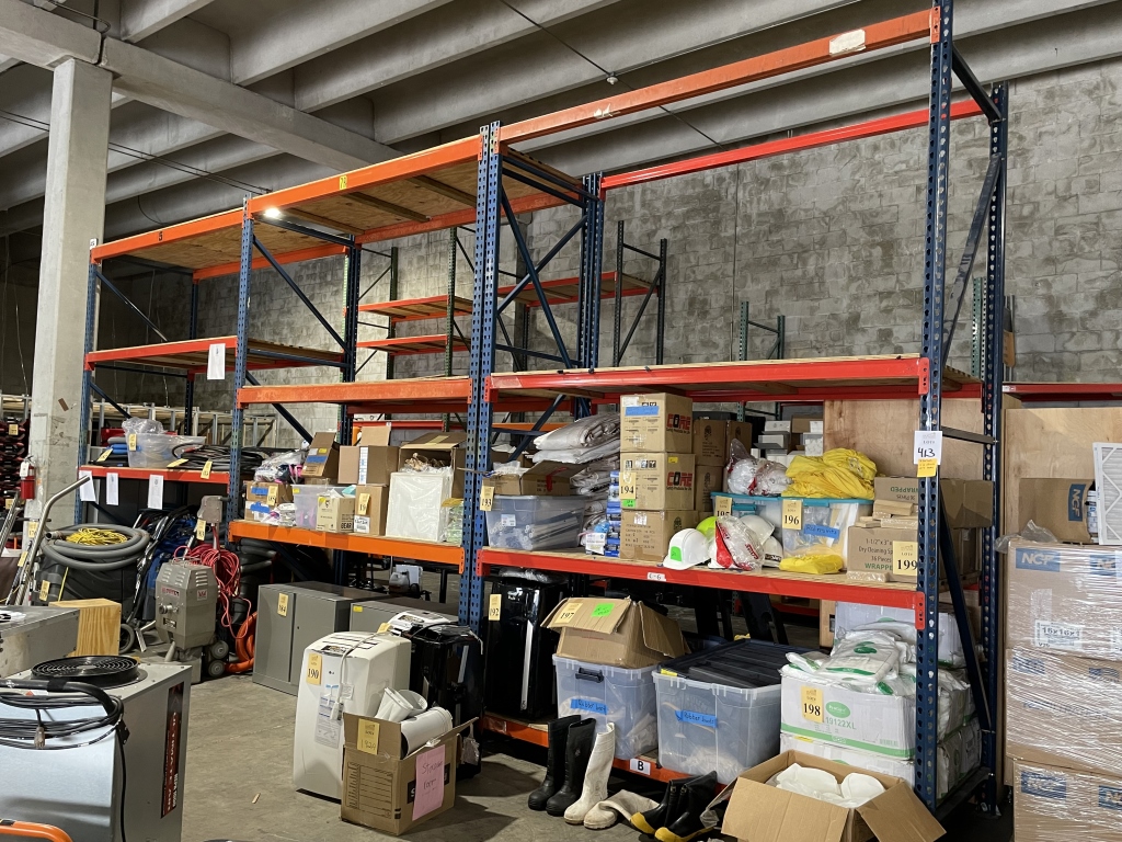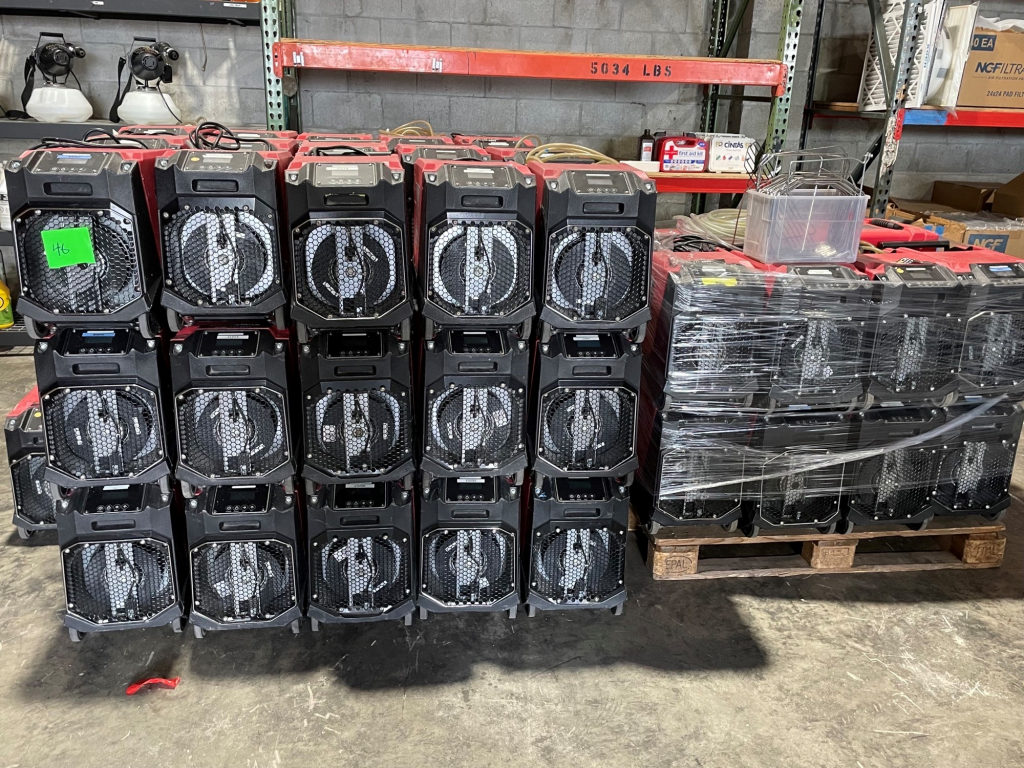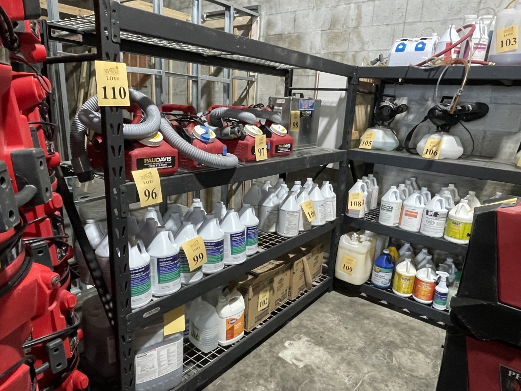 Sale will consist of: 2019 Ford Transit Commercial 250 Van Medium Roof 148” w/Sliding Pass VIN 1FTYR2CMXKKA30259, office furniture, air movers, shop vacs, HEPA vacs, dehumidifiers, water extractors, carpet cleaning machines, sump pumps, ladders, scaffolds, generators, pallet racking, commercial cleaning products and chemicals, buckets, brooms, mops, warehouse equipment and much more.