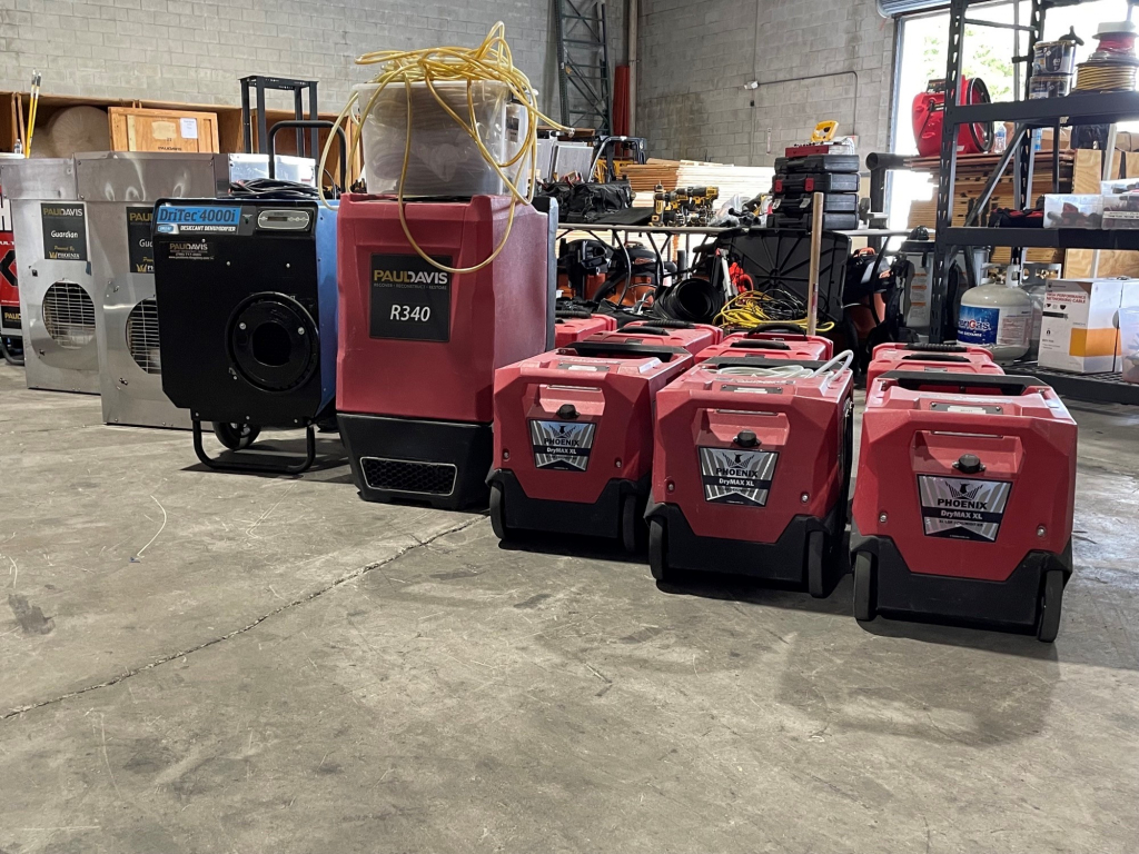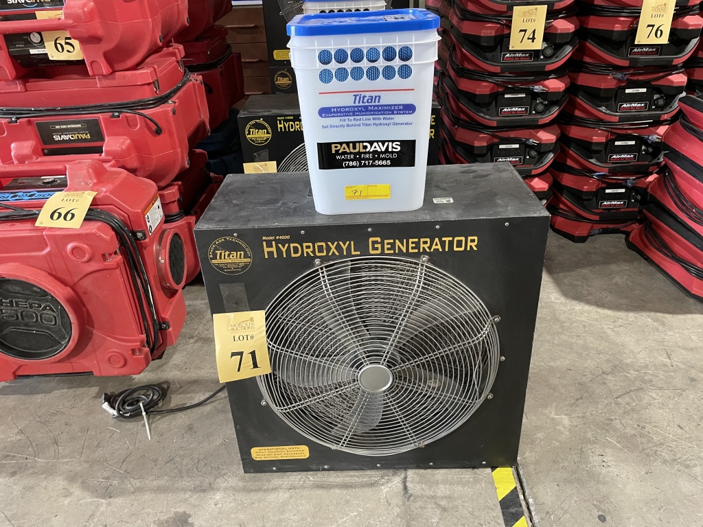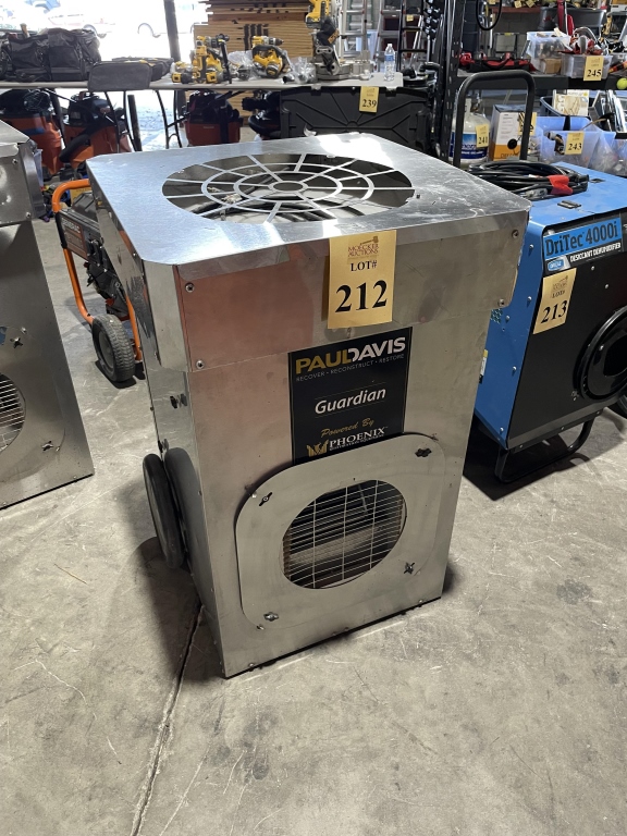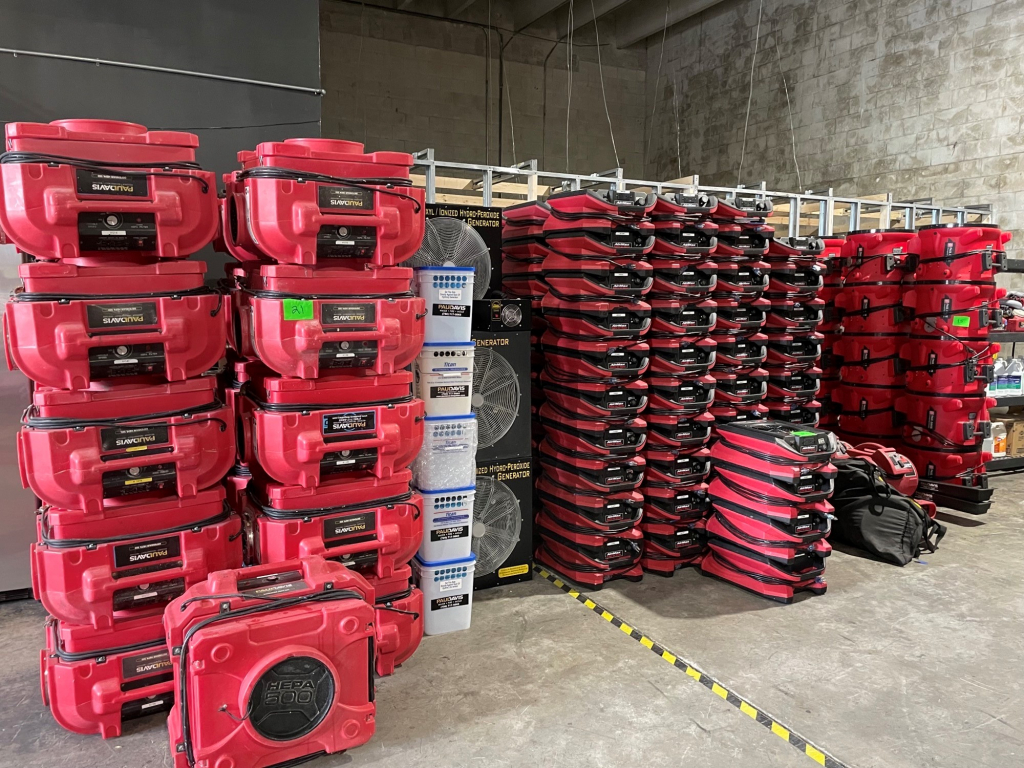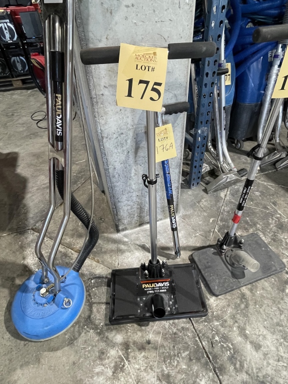 Sale will consist of: 2019 Ford Transit Commercial 250 Van Medium Roof 148” w/Sliding Pass VIN 1FTYR2CMXKKA30259, office furniture, air movers, shop vacs, HEPA vacs, dehumidifiers, water extractors, carpet cleaning machines, sump pumps, ladders, scaffolds, generators, pallet racking, commercial cleaning products and chemicals, buckets, brooms, mops, warehouse equipment and much more.