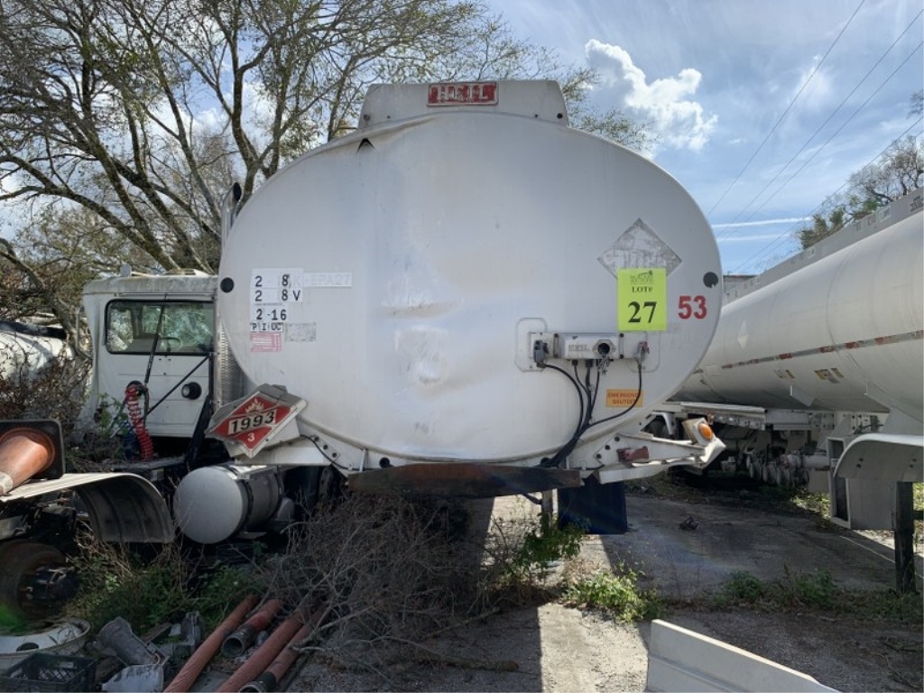 Lot 21 - 1985 Fruehauf Fuel Tank Trailer Capacity: (4) Compartment Sizes: 3,000g, 1,500g, 2,300g, 2,600g Total Capacity: 9,400 Gallons, Vin: 1H4T04427FK012805 (Trl#5)