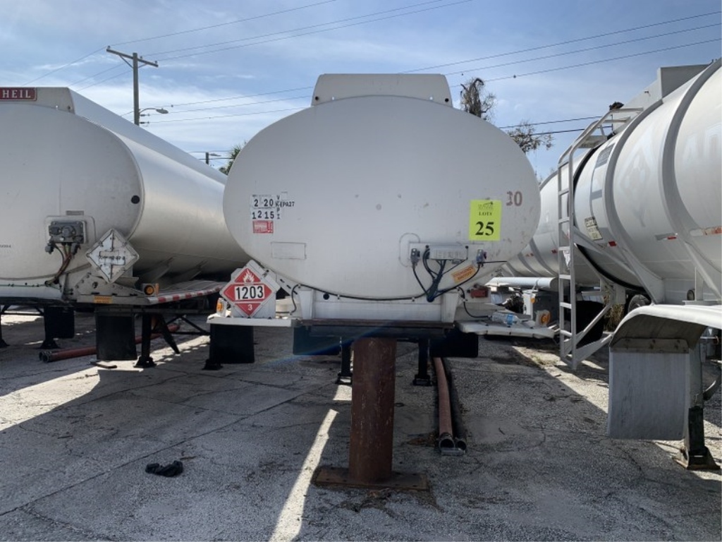 Lot 24 - 1991 Fruehauf Fuel Tank Trailer Capacity: (5) Compartment Sizes: 3,100g, 1,250g, 1,300g, 1,050g, 2,500g Total Capacity: 9,200 Gallons, Vin: 1H4T04226ML024910 (Trl#61)