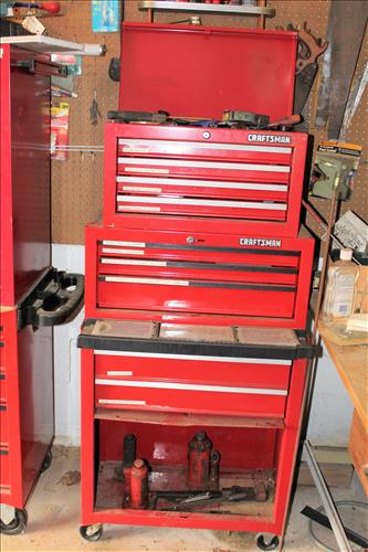 Equipment & Tools: Cub Cadet Jet Sweep Blower, Honda Harmony EN 5000 Generator, Front Tine Rototiller, 5 & 8 HP Shredders, Craftsman: Air Compressor, Push Mower, Push Weed Trimmer, Hedge Trimmers, 6 " Pedestal Bench Grinder, 20" Scroll Saw, 10" Band Saw, Portable/Stackable Tool Boxes & Electric Start Snow Blower; Toro Self Propel Push Mower, Leaf Blower, Grass Hog Electric Weed Eater, Weed Eaters: Troy Bilt, Bolens, Ryan & McCulloch; Ryobi Trimmer & Tiller, Electric Skil Saw, Poulan Electric Chain Saws, McCulloch 16" Chain Saw, Poulan 18" Chain Saw, Electric B & D Hedge Hog Edger & Lawn Mower, 5 Speed Drill Press, 2 Ton Hydraulic Floor Jack, Wolfcraft Rollers, Work Force Work Bench, Shop Lights, Hand & Garden Tools, Belt Sander, Loppers, Aerator & More..