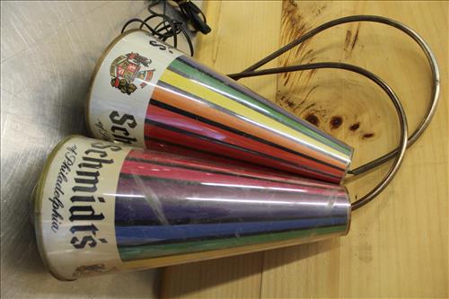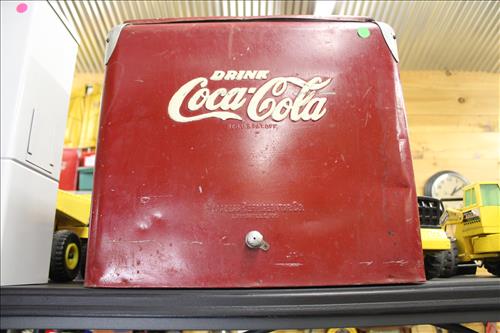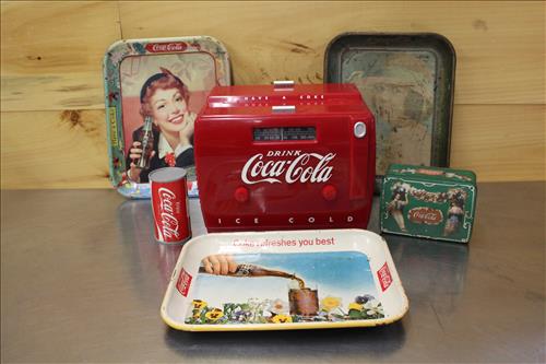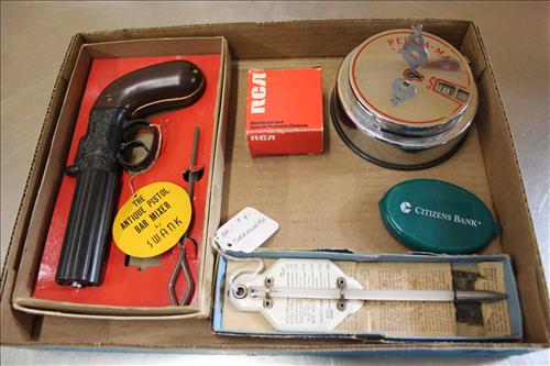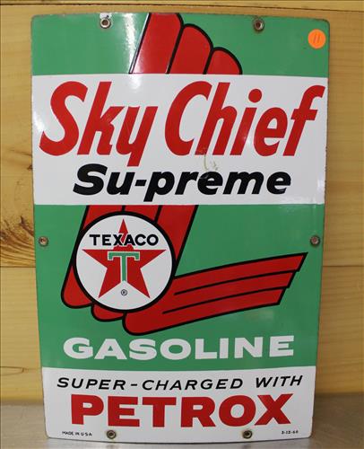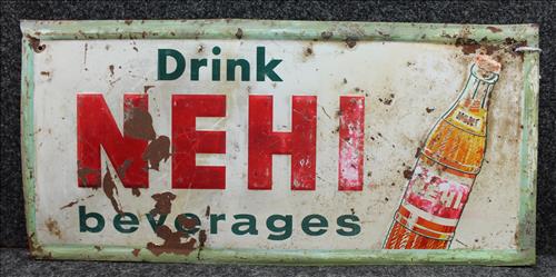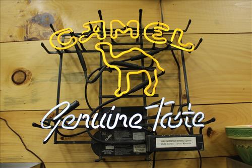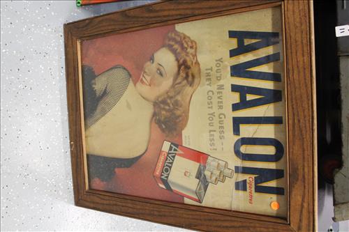Advertising:Porcelain Signs: Indian Motorcycles, Mobiloil, 1960 Sky Chief Gasoline, Atlantic, Super-Fina, Kool Motor, Public Telephone, Restroom, (2) Sided Side Hangers- Golden Girl Sun Drop & Firestone Tires; Displays: Raven Gloss Shoe Dressing, Demco V Belt Holder, Aladdin Carbide Sharpeners, Esquire Polish, Red Lips, So-Dri Windshield Service, Barbie K-Mart & Hartwell Handles; Framed Avalon Cigarette Picture, Coca Cola Cooler, 5¢ 7 Up Cafe Menu Sign, Dr. Pepper Clock, Nehi, Schmidt's & Coke Trays, Cast Champion Spark Plugs, Thermometers: Pepsi, Nature's Remedy, Winston Cigarettes & Tums; Vintage Pepsi Plastic Norman Rockwell Santa, Boxes & Crates: Procter & Gamble's Ivory, Silvis Silver Farms Milk Bottle Carrier, Hope Biscuit Works Crackers/Biscuits Allegheny PA, Carlings Brewing Co., Remington Express Ammo & RC Cola; Metal Signs: Geauca (misspelled) Lake, Stop Thru Traffic, George Boliva Independent Dealer, American Tower, Under Surveillance, Armstrong Cable, Pepsi Cooler Side Panel & Auburn; Lights: Ballantine Ale, Neon Camel Cigarettes, 4' Schaeffer Beer Clock/Light, TY for Shopping with Us, Pair of Schmidt Hanging & Frankenmuth Pilsner Beer; & Brunswick 12 Cue Stick Holder & More.