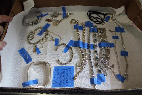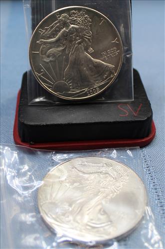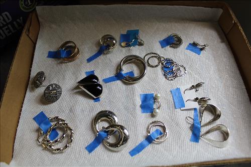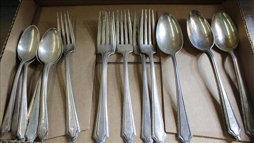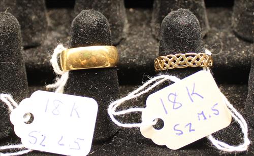 Sterling Silver, Gold, Coins & Jewelry:Aristrocat Railroad Pocket Watch, (2) 18K Gold Rings - Wedding Band & Celtic, (4) 14K Rings - Sapphire, Lazer Cut, Rainbow Stone & Band, (4) 10K Gold Rings - (2) Birthstone, Moonstone & Emerald, 1923 10K Rochester High School Class Ring, 10K & 14K Necklaces, Earrings, Crosses, Pins & Pendants, Sterling Silver: Rings, Bracelets, Earrings, Pendants, Pins, Necklaces, Spoons, Forks, Carving Sets, Pickle Fork, Candle Snuffer, C/S & More; Coined Items: Susan B Anthony & George Washington Quarters Belt, Buffalo Nickel Bracelet & Ike Belt Buckle; Cuff Links, Many Box Lots of Costume Jewelry, (2) 2009 American Silver Rounds, (12) Silver Walking Liberty Half Dollars & More.