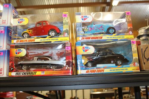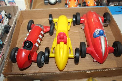 Collectible Toys:Nintendo DS & Gameboy, Barbie Cases, MOBO Bronco Metal Gliding Pony, Hubley, Tootsie & Tonka Small Cars/Trucks, Marx Ride on Train & Van Line Truck, Buddy L Dump Truck & Car Carrier, Ideal Truck, Wyandotte Highway Freight Trailer & Truck Puller, Structo Telephone Co. Truck, (2) Auto Haul Away, Auto Transport & Flatbed, Saunders Marvelous Mike Tracto, Match Box Cases w/ Cars (a few Red Lines) NOS Irwin "Moon Buggy'" Disney Pinocchio Bean Bag Figures, Drag Race Cars, Spider Man Chair, Paintball Gun & Pads, "300 Ball Game": Patented in1917 Game, Many Model Plastic/Metal Sprint Cars, AFX Western Classic HO Scale Race Set, Tiger Off Road Racer, Child's Kitchen Set, Slinky Hippo, (7) New Car Quest Cars/Trucks, New John Deere Collector Set, Star Wars Crew Members Exploration Packet, Hanging Dart Board in Wood Case & Etc.
