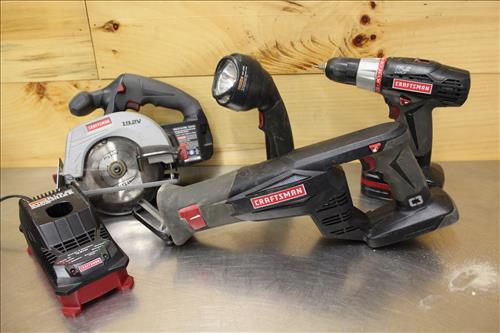 Tools & Specialty Oils & Lubes: Werner Fiberglass Step Ladder, Aluminum Extension Ladders, Black & Decker Cordless Weed Eater & Blower, Sanborn Air Compressor, Dozens of Heavy-Duty Casters/Wheels, Bauer Auto Feed Handheld Drain Cleaner, Craftsman: Small Wrench Set (Standard & Metric) Tool Set, 19.2 Cordless Tool Set w/ Charger: Reciprocating & Circular Saws, Flashlight & Drill; Chisel Set, Toolbox, Scroll Saw, Ratchet, Open/Box End Wrenches & Sockets; Air Hose Reel & New Hose, Dewalt Finishing Gun Nailer, 41/2" Irwin Bench Vise, Husky Screwdriver Set, Vintage Hobart Mixer, Many Planes, Extension Cords, Williams Super Wrenches, Echo Gas Blower, Punch Set, RR Spikes, PJ1: 4T Motor Oil, Spray Paint & Fog Blocker; Motorex: Shock Absorber Oil, Helmet Care, Brake Fluid, Chain Lube Spray; Panoline 10W 40 Quarts of Oil, Gold Line Dyna-Chek Tune-Up Tester on Stand, Power Sport Wire Display Units, Exide Corp. Easy Snap Battery Holder Rack & More.