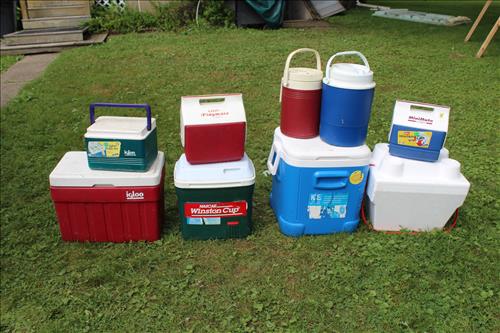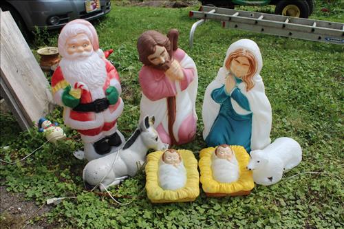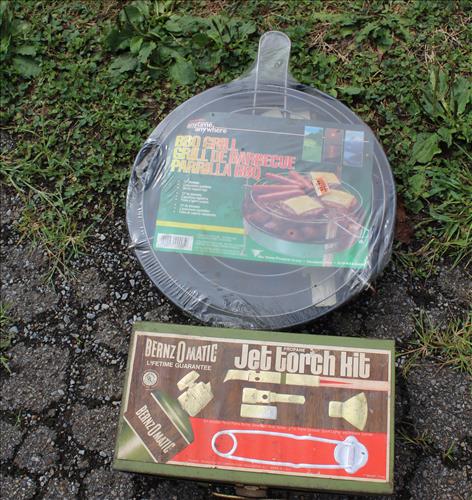 Sporting Goods:Coleman Camping Stove & Lantern, Greatland Camp Stove, 22 LR Ammo, Yard Bug Zapper, Gun Cleaning Rods, Illuminated Yard Nativity Scene & Santa, Coleman Queen Double High Air Mattress w/ Pump, Ozark Trail Screen House, Various Size Coolers, Bird Feeders, Metal Fishing Box & Net, Back Yard Propane Grill, Huffy Banana Seat Bikes: Dream Journey & Sea Breeze, (4) 185/55 R15 15" Tires on Rims, Motorcycle Parts & Accessories: Honda Parts, Tail Lights, Windshield, Saddle Bag Lights, Chrome for Grill, Covers, Seats, Helmets, Pedals, RPM Gauge, Back Rests, Brake Pads, Misc. Motors/Scrap & More