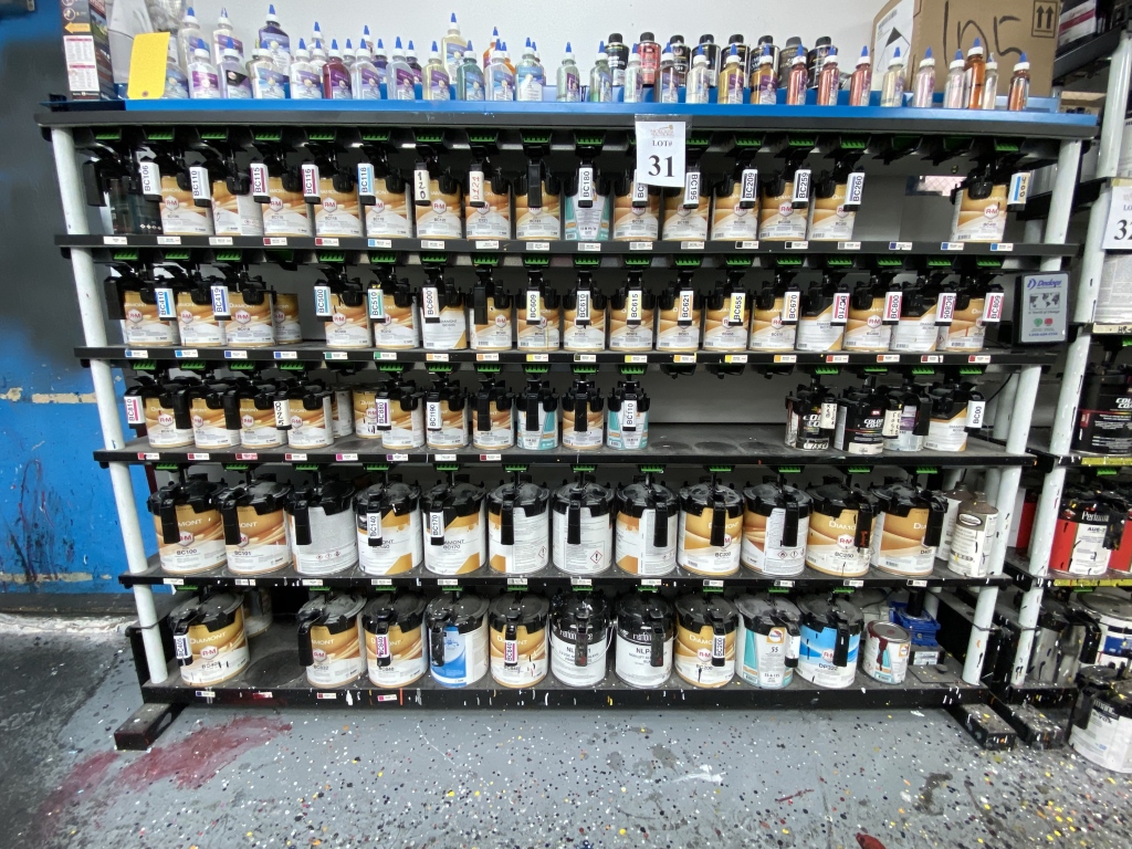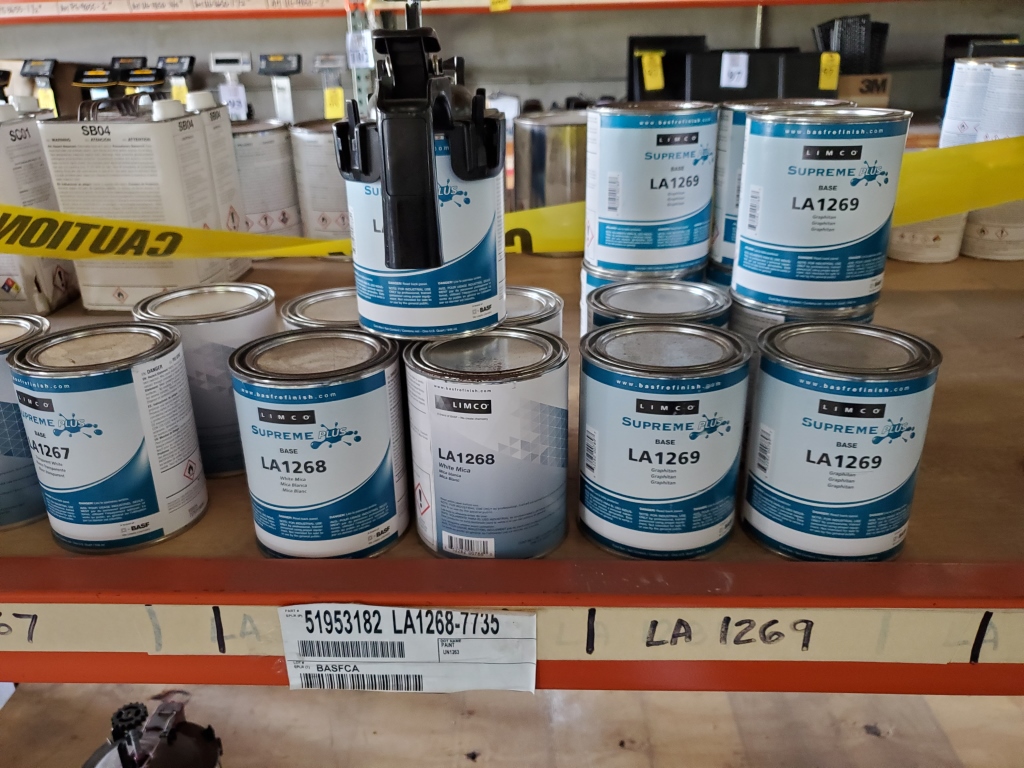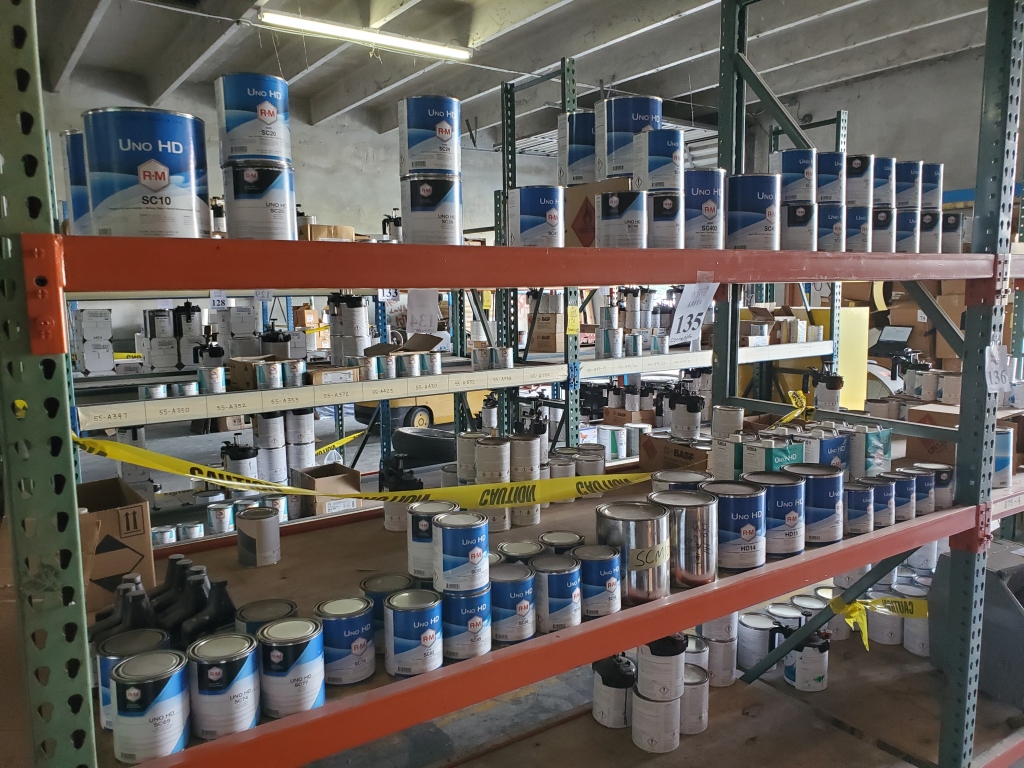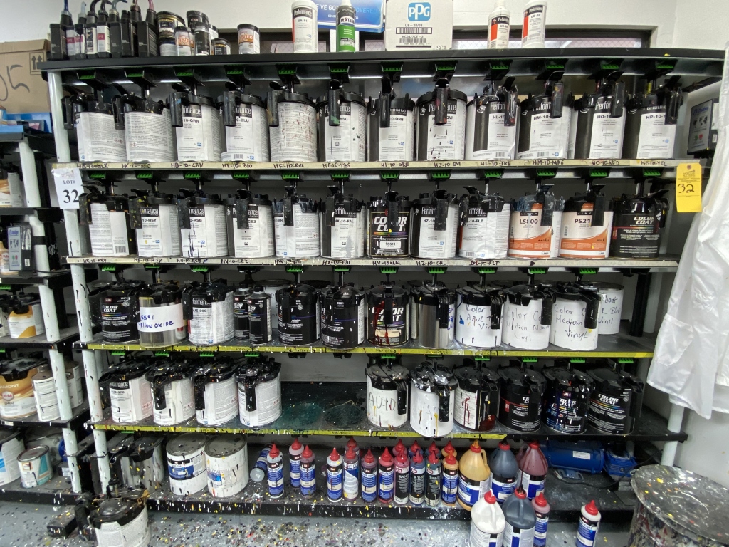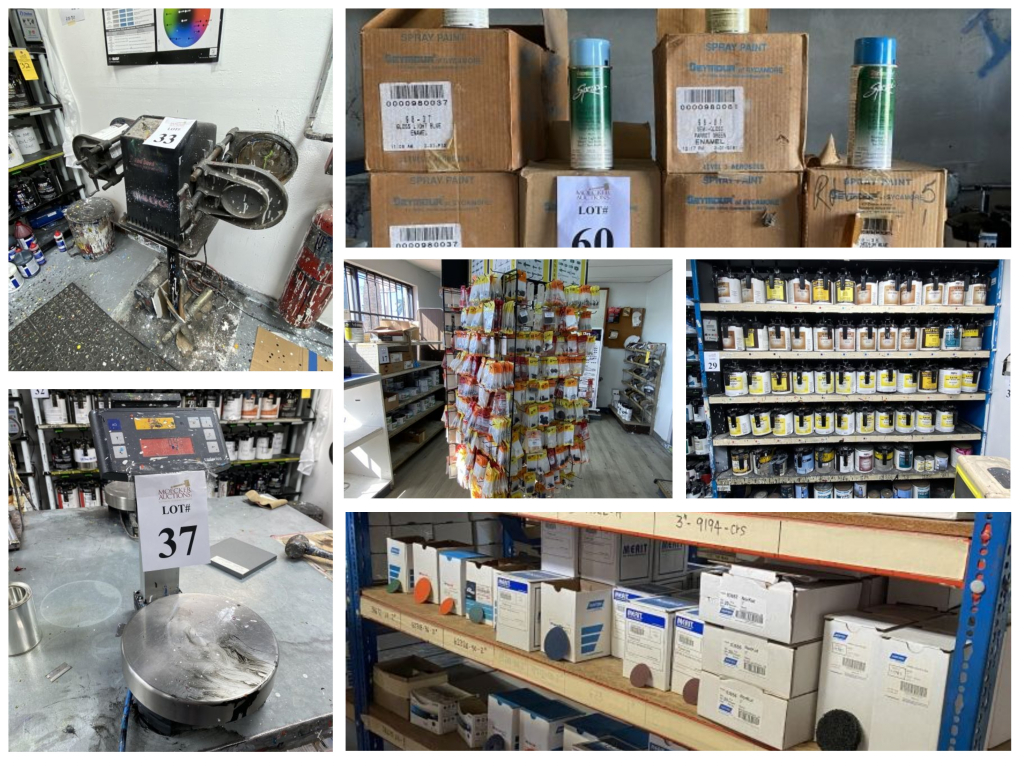 Sale will consist of Automotive Paints and Finishes, Supplies and Vehicles: BSF Paint Line including Limco, Diamond RM and Glasurit: Toners, Primers, Sealers; Paint Stirring Machines; Sandpaper – 5” and 6” – Velcro & Sticky, 9” x 11” – Wet & Dry, Water; Vinyl, Leather and Plastic Coatings; Putty Fillers; Industrial Coatings for Heavy Duty Machinery; Mounting Clips for Headlights, Door Panels, Bumpers, Window Trim, etc.; Scales; Spray Guns; Caulking Seem Sealers; Interior Vinyl Sprays; Caterpillar Forklift and Vehicles: 2018 and 2017 Chevy Colorado trucks; 2013 Honda Civic LX; 2017 Mercedes Benz GLE; 2016 Toyota Tacoma Crew Cab SR5 Truck and much more!