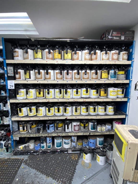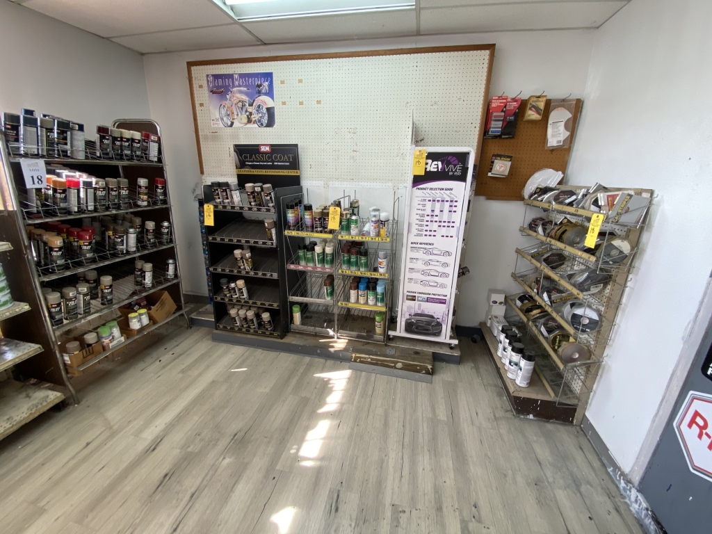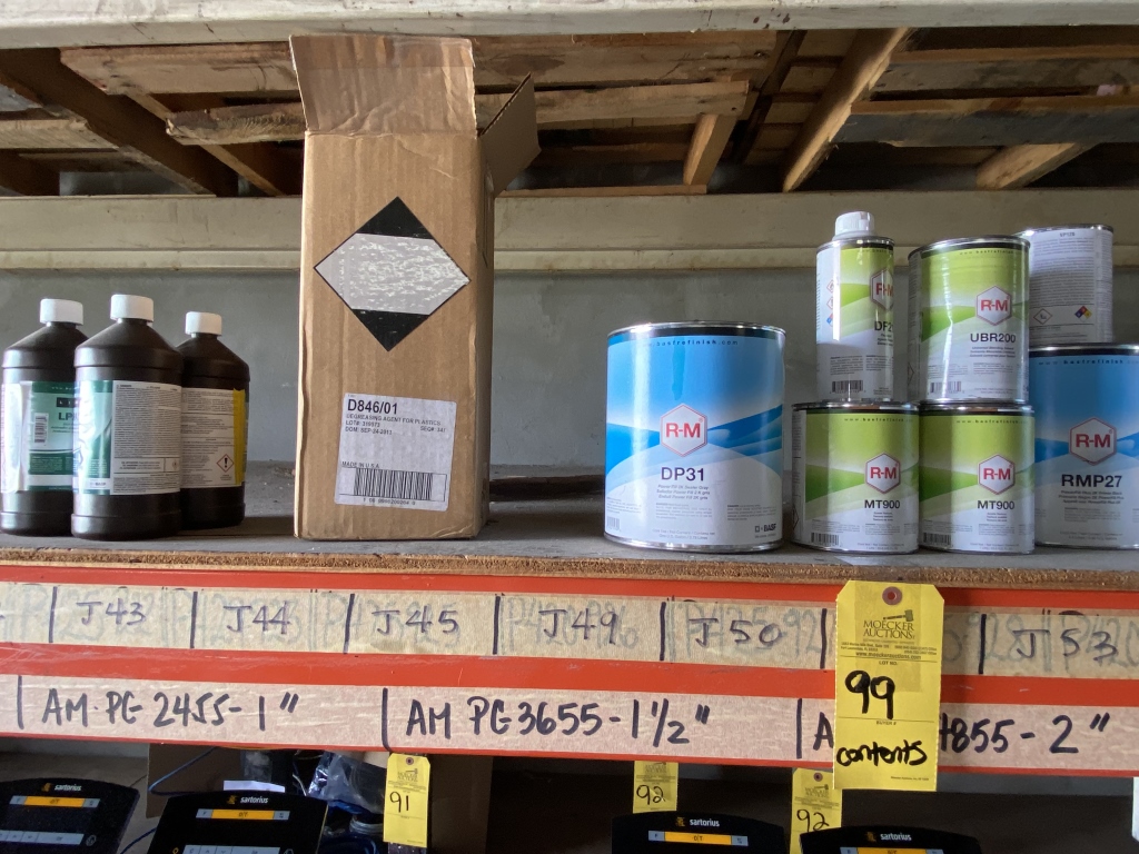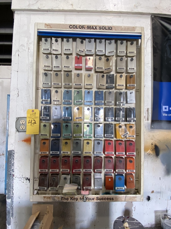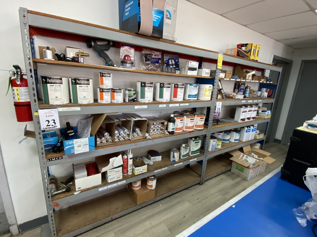 Sale will consist of Automotive Paints and Finishes, Supplies and Vehicles: BSF Paint Line including Limco, Diamond RM and Glasurit: Toners, Primers, Sealers; Paint Stirring Machines; Sandpaper – 5” and 6” – Velcro & Sticky, 9” x 11” – Wet & Dry, Water; Vinyl, Leather and Plastic Coatings; Putty Fillers; Industrial Coatings for Heavy Duty Machinery; Mounting Clips for Headlights, Door Panels, Bumpers, Window Trim, etc.; Scales; Spray Guns; Caulking Seem Sealers; Interior Vinyl Sprays; Caterpillar Forklift and Vehicles: 2018 and 2017 Chevy Colorado trucks; 2013 Honda Civic LX; 2017 Mercedes Benz GLE; 2016 Toyota Tacoma Crew Cab SR5 Truck and much more!