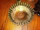 GLASS: Cut Glass Pitcher, Fostoria “American” Stemware (3 sizes), Opalescent green Carnival glass Bowl, Pressed Glass pieces, Fenton orange crest vase.