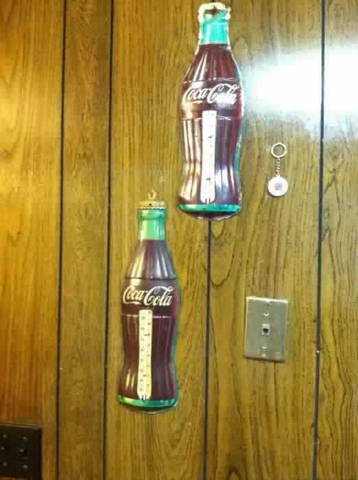 COLLECTIBLES: Crock Jug and washboard, Enamelware pots etc, Nice red Globe RR lantern, Round wooden 14” Dough bowl, Large white enamel 20 cup coffee pot w handle, Large antique Copper Bucket ca. 1870, Pine wooden and metal banded Churn, Brass ships bell, Large split Oak flower basket, Large flat tobacco Basket, Cherokee Butt Basket, Oak large size wall phone, German pottery steins, Hummel, Toby Jugs, Tabletop Radio, Needlepoint Confederate Picture, NYC Railroad creamer, Railroad lantern, 2 Coke Thermometers (metal), Spout metal oil can, Wood box with lid, Wooden dovetail box, AB Galloway 1900Naval mid-shipman’s CAP, Early Hammered Brass spittoon, Oak religious Bible Box, Civil War tintype of confederate soldier in uniform and black period frame, Oak 1920's bed tray, Pine doll rocker, Hand tied bowtie and other patterns 8-10 quilts, Old round bottom Mandolin, John Deere Toy Tractor, 7 carved Canes, wooden Falstaff Beer Box, Old wind-up toy Police Car, Old Post office drop Bank, Composition doll, reproduction Steeple Clock, 1942 Standard Oil wall Calendar, Framed Uncle Remus AD, Framed Magazine cover with black-face girl and watermelon, Small 5" round Emerson brass blade fan, Pine primitive doll cradle, US gun holster Leather, Pewter, Clamp lid Jars, Old and new glass Oil Lamps, Black 1940 RotaryDialphone, Hall’s Hair remover Chess Board AD piece, Black face China doll. Large Federal Ogee Clock with Brass wings at bottom, Salem cigarette ad tins, Elvis 45's with sleeves, Lots 45 size records, Arrowheads, Military patches & medals.