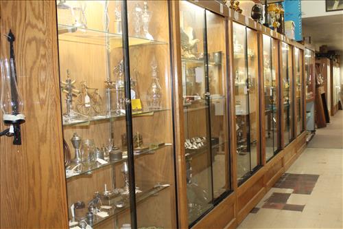 Display & Show Cases:55 Museum Glass Front Show Cases (7' x 4'), Slant Front Oak, 3 Sided, Curved, Glass Top Case, August Sauter Table Top Display, (2) Illuminated Jewelry Cases, 3 Shelf Unit, Circular Jewelry, 1/4 Round Showcase & Etc.
