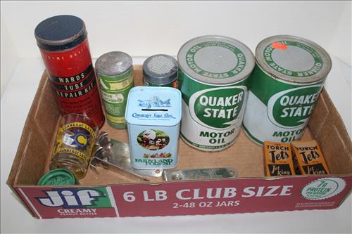 Advertisement Items:Ed Menaldi Jewelry Hamilton Wall Clock, "Time to Buy Calumet Baking Powder" Clock, State Farm Metal Insurance Sign, Gulf Supreme Auto Oil - Pitts Enameled Sign, Metal "Security Tires" Signs, Wonder Bread & Credit Cards Signs, Venango Cty Weights & Measurements Dept. Scale,Beer: Miller, Michelob, Stroh's, Ballantine Ale, Black Lael, Schlitz, Olympia, Old Milwaukee, Falstaff, Budweiser & Busch;Tins: Numerous Amount of Assorted, Tobacco, Paint, Spices, Crayons, Cigars, Cigarettes, Coffee, Talc, Olive Oils, Quaker State & Sunoco; Genesee Beer Light, Numerous Medicine Bottles, Shelby Pipes, New Castle Cream Siphon & Bruce Electric, South Side Hardware Premium Platter, D.B. Finley Political Mercer, PA, Belt Buckles: Ford, Slim Jim, Remington & F-15 Eagle;Bottle Openers:Fort Pitt & Reading Special Beer & Nifty; Firestone Scrapers, Pamella Texaco Service Clip Boards, Robin Hood Flour Seeds,Milk Bottles: Rosy's Dairy, Luptak, Maple Drive, Kleins, Horvath, Isaly's, Valentino, Schneiders, Guernsey, Meadow Gold, Erway Farms & Others; Amco Oil Can, Mobile Oil Brass Tags, Steel Workers Buttons/Pins, 1909 Shriner's Goblets, American Cyanamid & Chemical Corp. Box, Bells, Portage Sheriff Badge,Baby Bottles: Robbie Yum Yum, Goosie Gander, Peter rabbit & Old Mother Hubbard; Lowenbrau Lion Bottle Holder, Dad's Root Beer Bottles, Ash Trays, Coca-Cola Patches, U.S. Mail Banks & More.