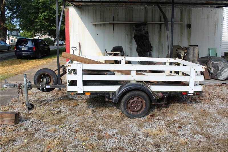Items of Interest: 1973 Chevy Custom 20 Flat Bed Dump Truck w/ 69465 Miles & tc-508 Dumping Flatbed (Vin CCY243f351223), 1990 Double Axel 6.5' x 12' Car Hauler w/ Special Construction Title 10k Gross Weight, 2013 4' x 8' Trailer w/ Special Construction Title, Griswold Muffin Pans #18 & #10, 4 Engines: 1 fits Either a Chevy Corvette, Chevelle or a Camaro (Beautiful Gm 3903352 Motor, Broddix Block Heads, Chromed Exhaust System, Carburetor, Pistons, & More); 2 Misc. Engines, 1970 Buick V8 Engine w/ Transmission Marked B-1231718-E, Loose 4 Speed Transmission Marked GM81; Semi Exhaust System, Lawn Care: Sears SS16 Twin Lawn Mower w/ Deck Snowblower & Blade, Craftsmen 18-6 Twin Riding Mower w/ Snowblower Deck & Blade; Speed Queen Wringer Washer & More